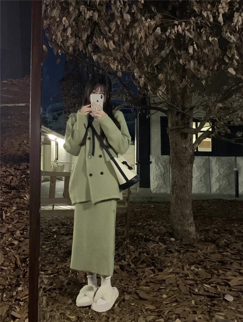 Cl ジェントルスーツ レディース 長袖 ターンダウンカラー ニットコート ウエストスカート 2点セット 洋服 ロング got83371931650