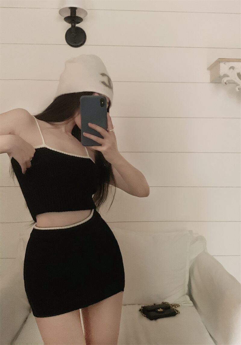 甘くてホットな女の子のスーツの女性のセクシーなグレーショートニットベスト春臀部スカート 2 点セット服 大人ガーリー スウィート キュート カジュアル スプリング 春物 got11678483888