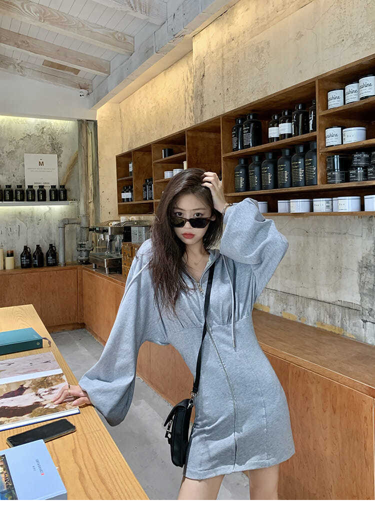 Gothiscyn 秋ドレス女性ソリッド フード付き長袖と薄いジッパー ドレス ロング ソリッドカラー got86246066301