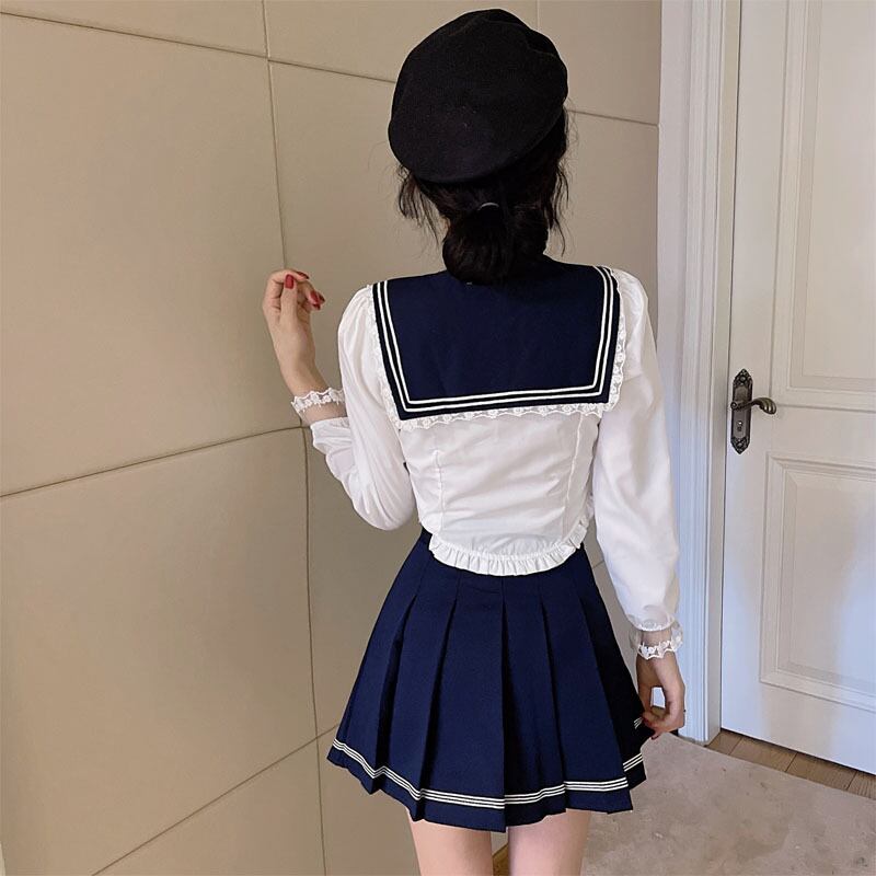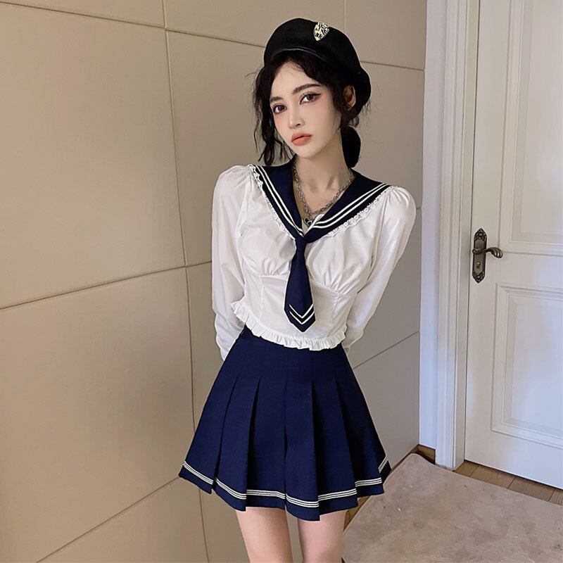 ese Style JKスーツ レディース セーラーカラー シャツ ウエスト Aライン プリーツスカート 2点セット 洋服 got12927320122