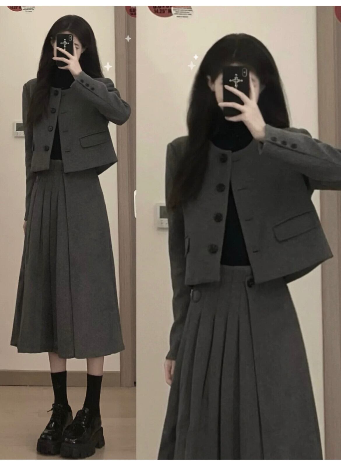 オフィスレディ通勤スーツ女性のショートウールコート冬ウエストミッドレングスプリーツスカート服 ウィンター 冬物 会社 学校 通勤や通学にも got50593033236