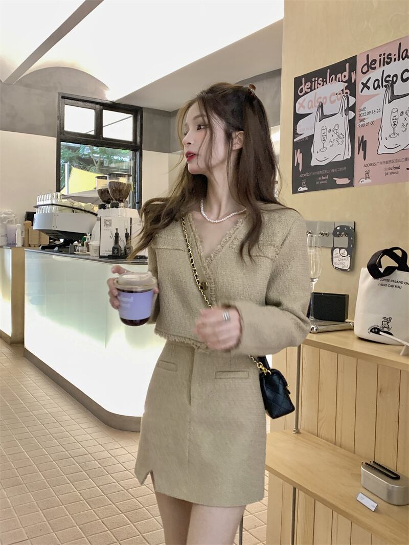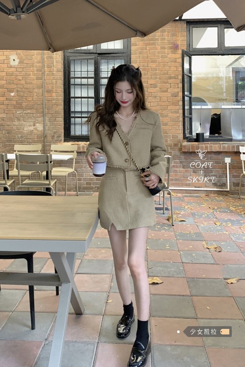 オフィスレディセレブスタイルスーツ女性の V ネックコートトップ秋冬スカート 2 点セット服 オータム 秋物 ウィンター 冬物 Vネック 会社 学校 通勤や通学にも got51328798593