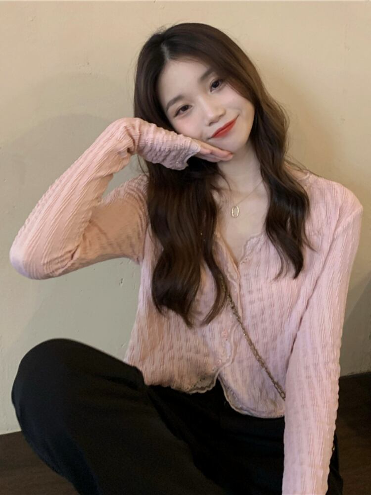 Gothiscyn カーディガンシャツ白人女性ブラウス長袖 V ネックシャツ 10 代の少女の夏服シャツ ロング ホワイト サマー 夏物 Vネック got48221307938