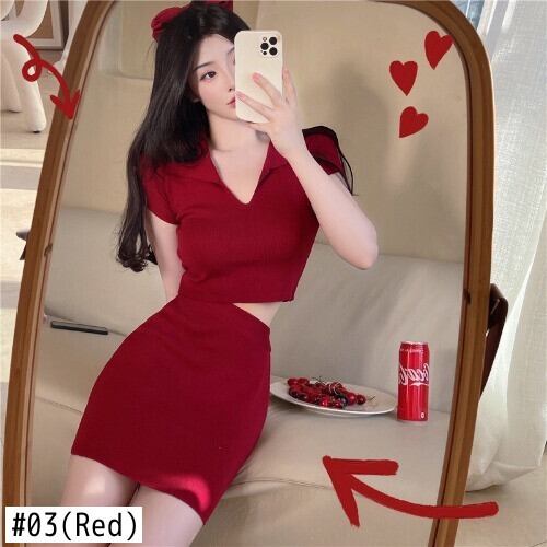 スーツ レディース ポロカラー ショートニット 春先 半袖 Tシャツ ウエストスカート 2点セット ハーフスリーブ スプリング 春物 got40229022506