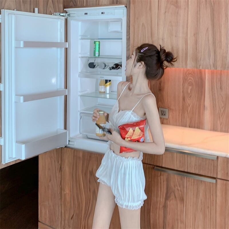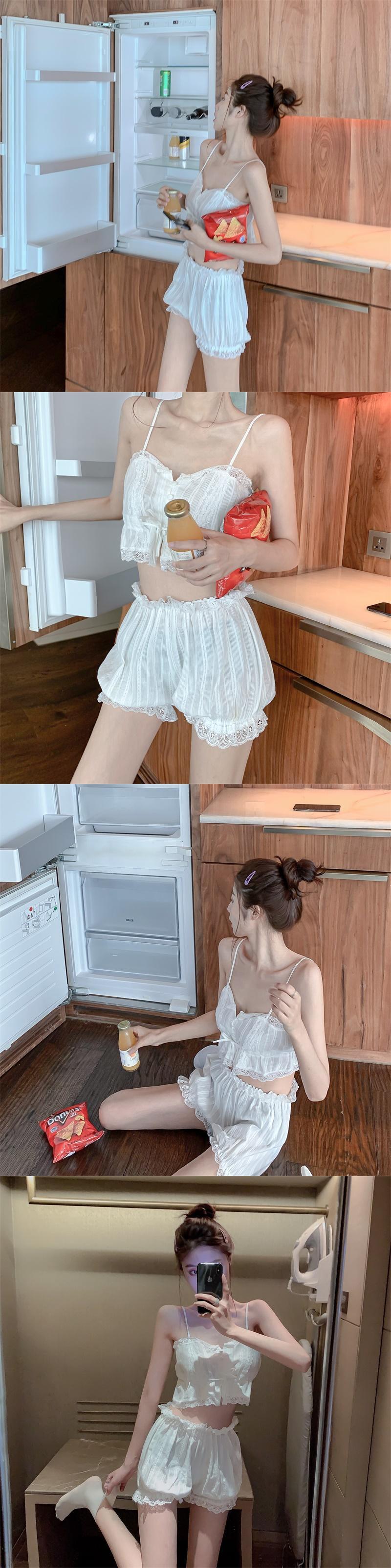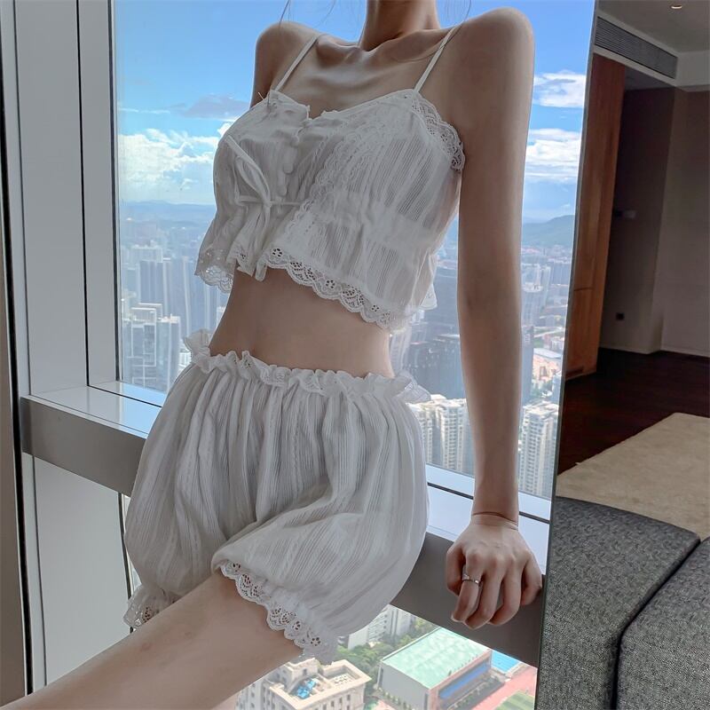 レースのスーツの女性の白いサスペンダー ベスト夏スリム セクシーなホット女の子純粋な 2 点セット甘いかわいい服 ホワイト 大人ガーリー スウィート キュート カジュアル サマー 夏物 ピュア got44173591508