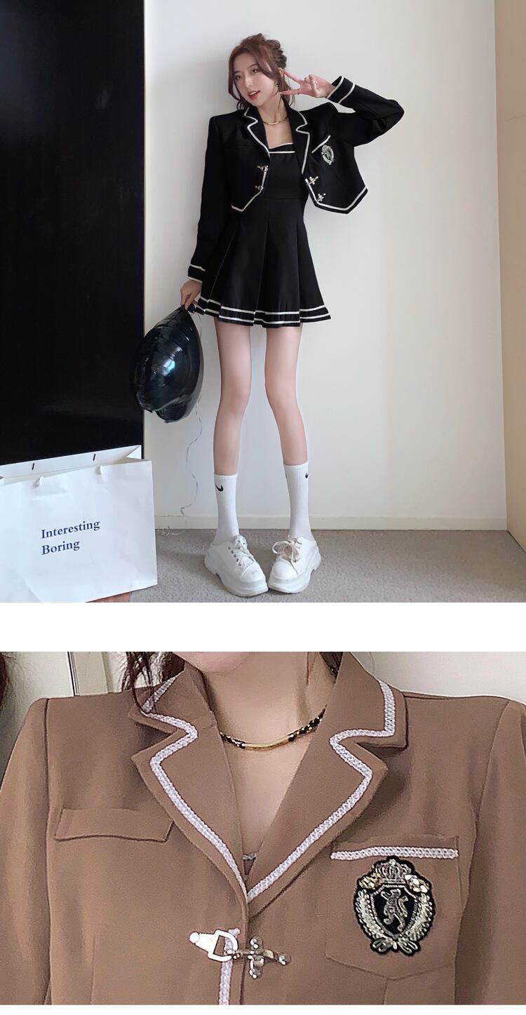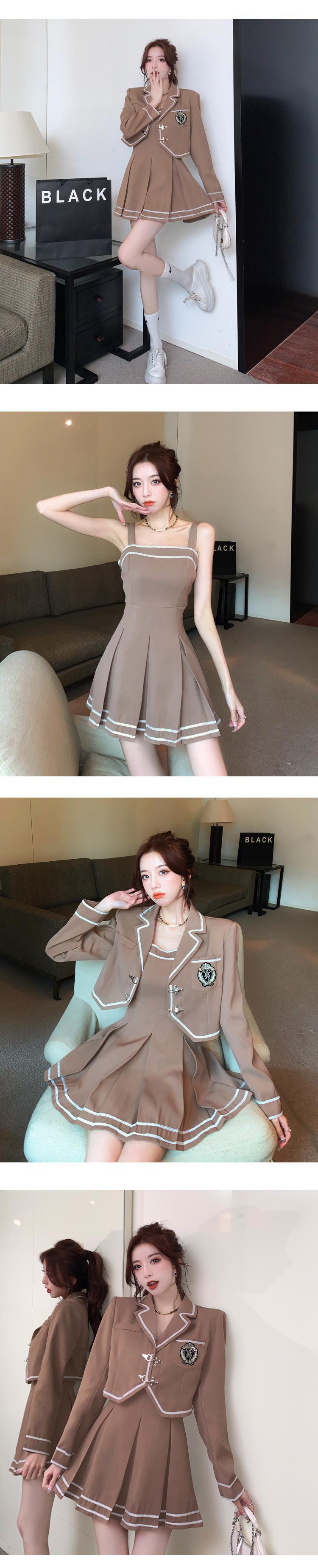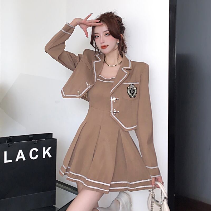 Gothiscyn ツーピースセットレディース衣装純粋な欲望ショートスーツコートスリングプリーツドレス無地梨花服秋スカートセット オータム 秋物 ピュア ソリッドカラー got55382401746
