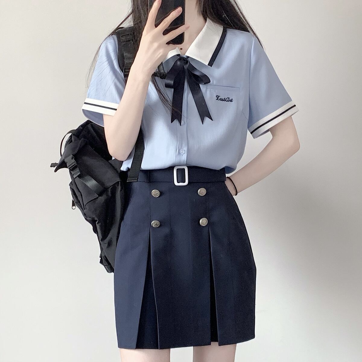 JKスタイルスーツレディースブルー半袖シャツウエストスカート2点セット服 got52247962394