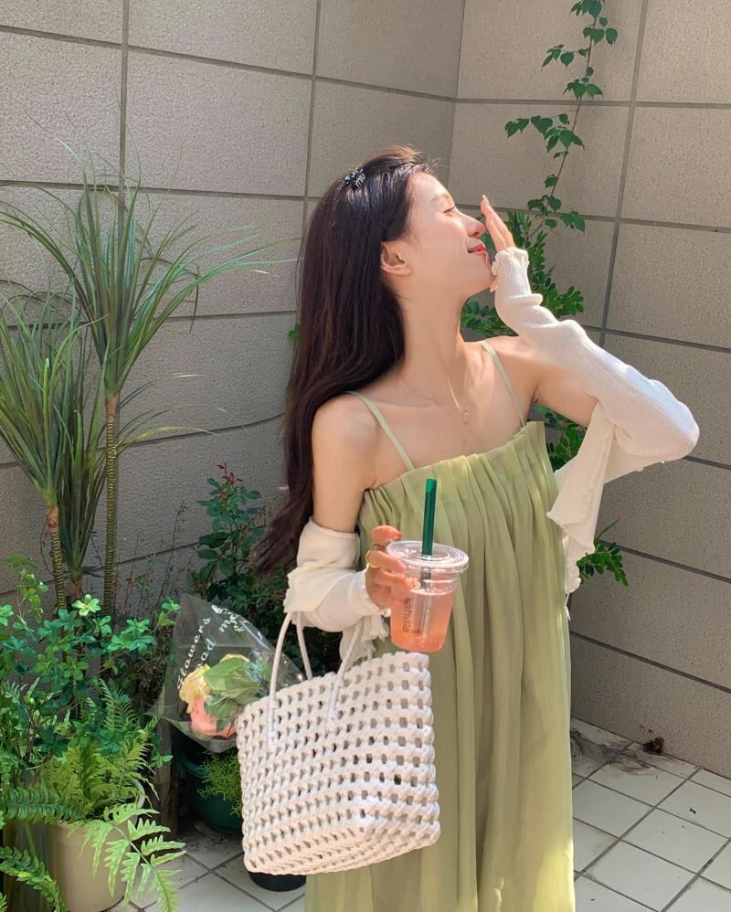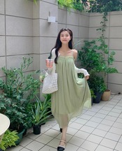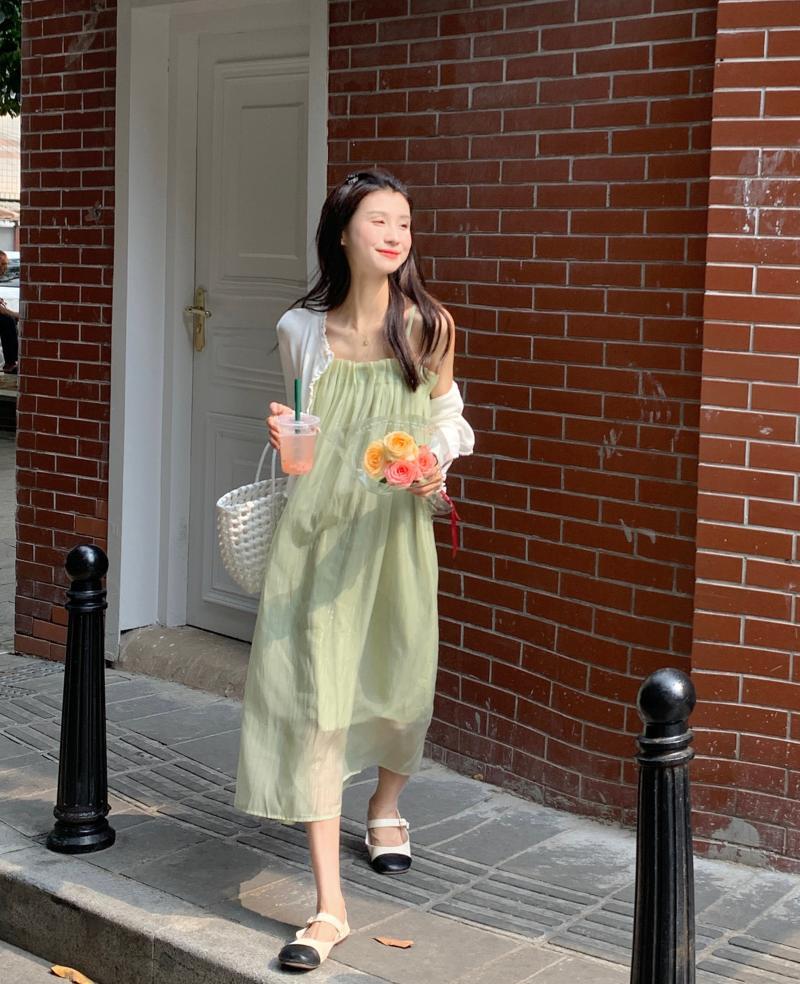 Gothiscyn グリーンサスペンダードレス女性サマーホリデースカートスーツアンクルロングスカート無地シックなビーチ優しい 夏物 ソリッドカラー got77929295179