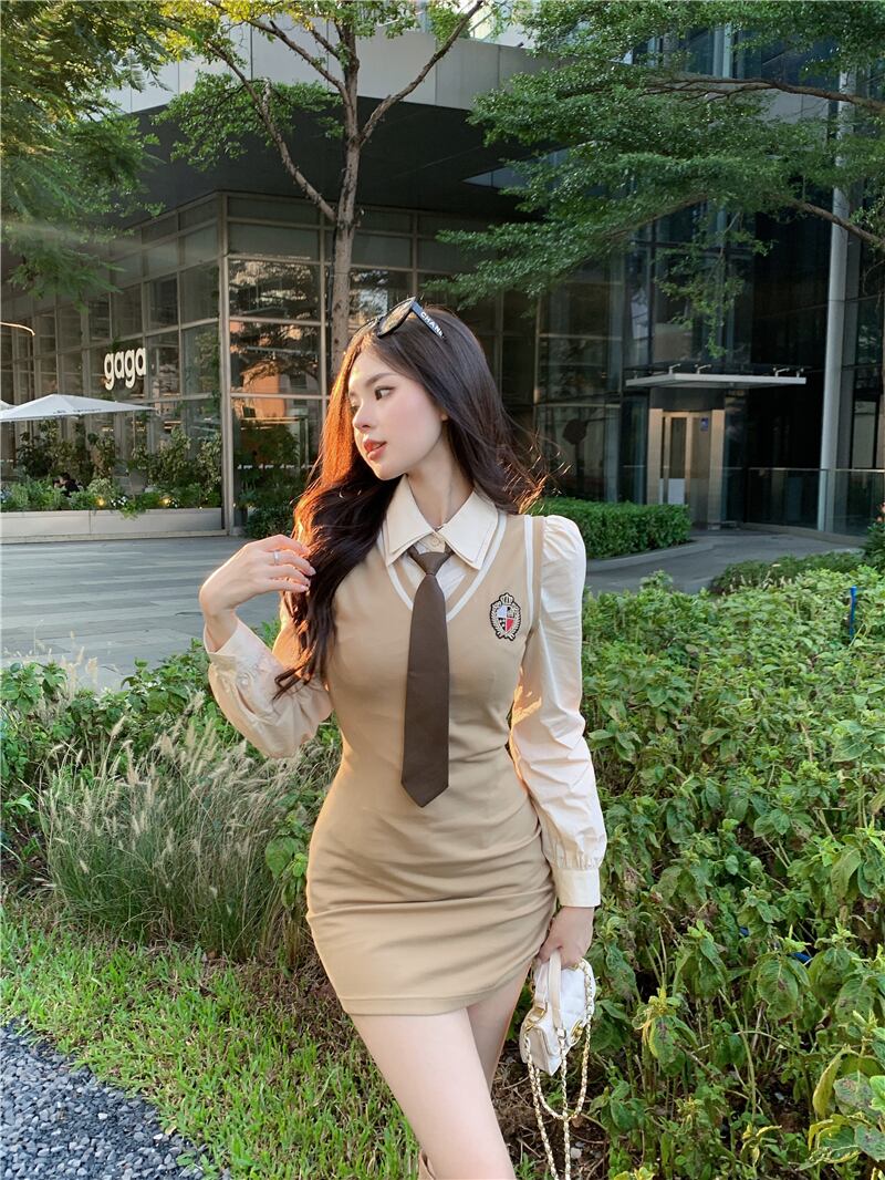 秋と冬のスタイルのスーツの女性のスリムチョッキドレス気質長袖シャツとネクタイ 2 点セット ロング オータム 秋物 ウィンター 冬物 got94236692718