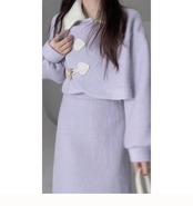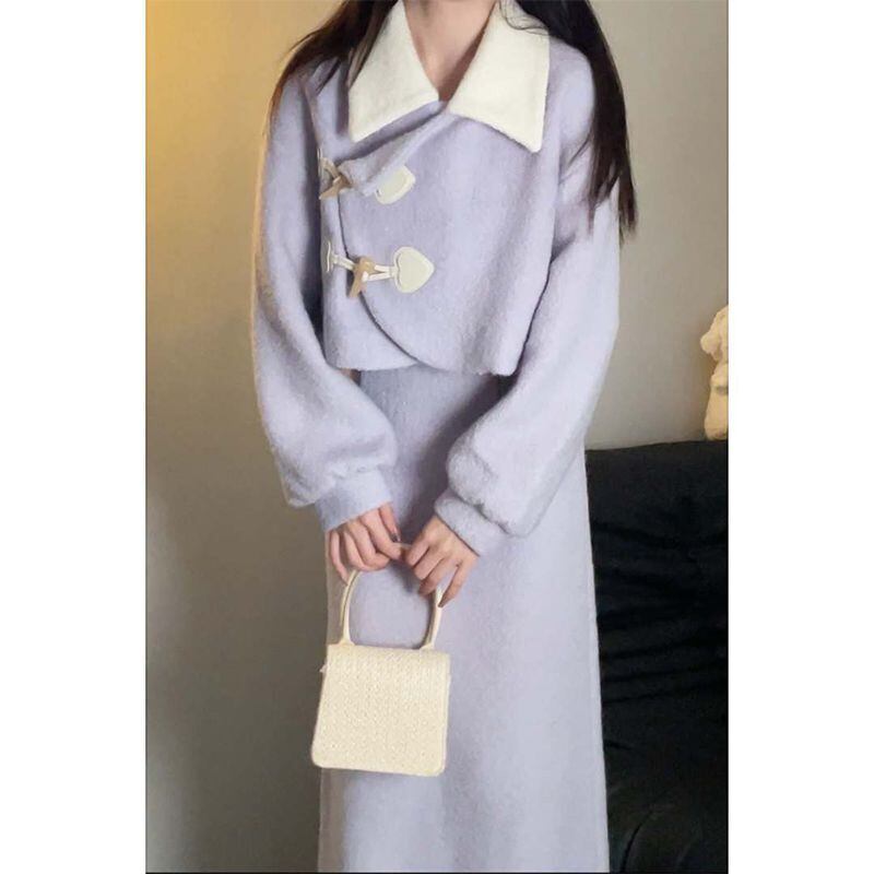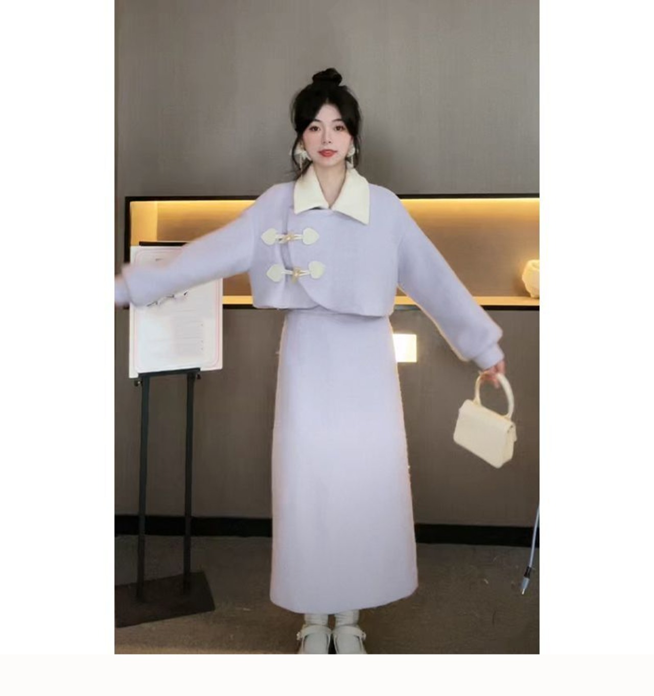 秋と冬のスーツの女性のホーン ボタン長袖コート ウエスト ロング スカート 2 点セット服 オータム 秋物 ウィンター 冬物 got75077705446