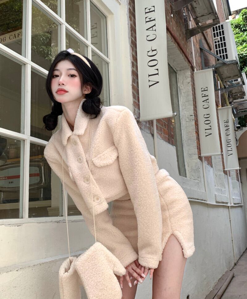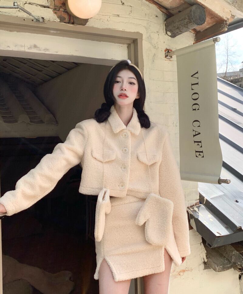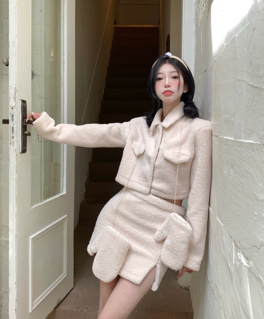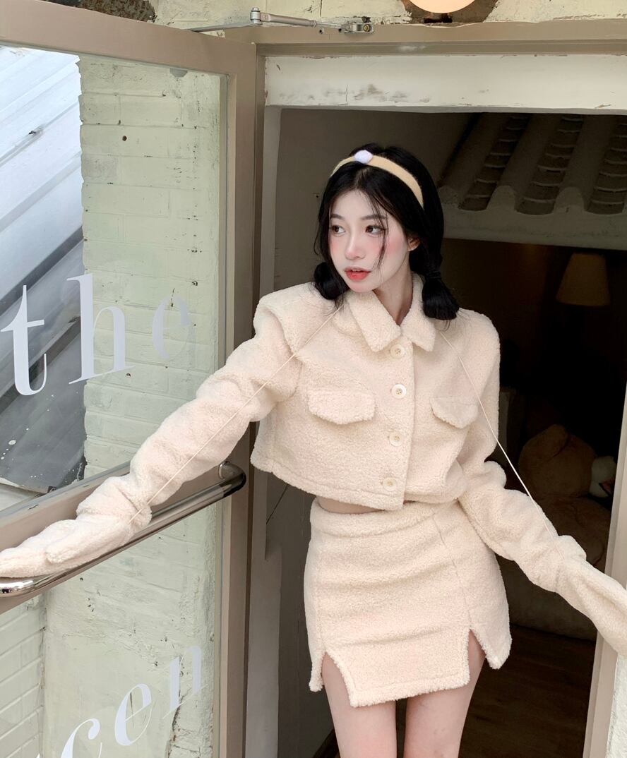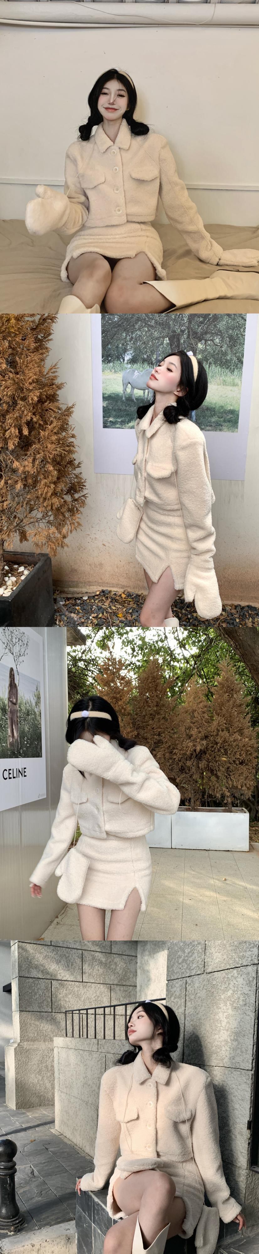 スウィートガールスーツ女性の豪華なカーディガンコートショートトップスプリットヒップラップショートスカート手袋 3 点セット服 大人ガーリー キュート カジュアル got20995839331