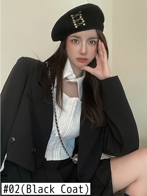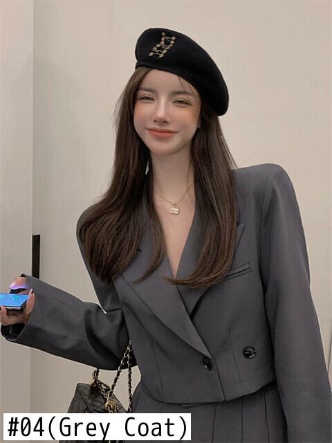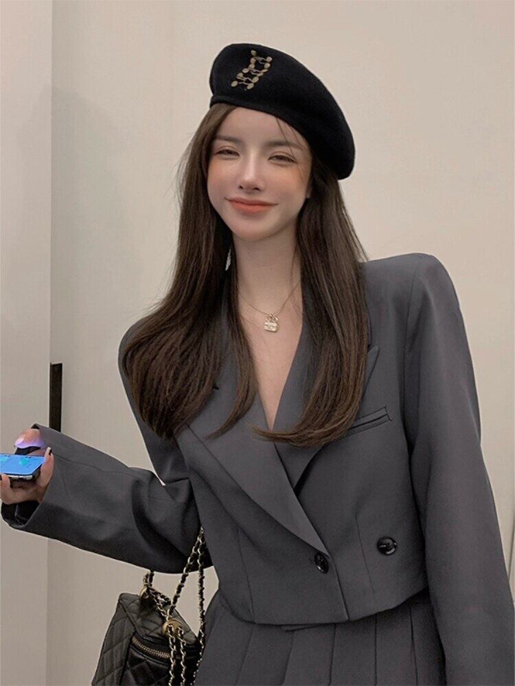 Gothiscyn 女性スーツ ブレザー ジャケット ショート プリーツ スカート 2点セット オフィス レディ スーツ 無地 春 トレンド スプリング 春物 ソリッドカラー 会社 学校 通勤や通学にも got26065989169