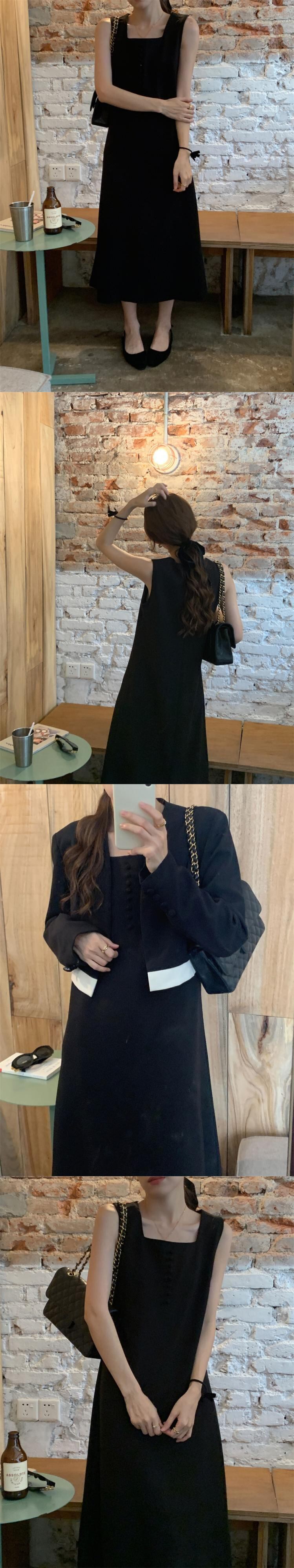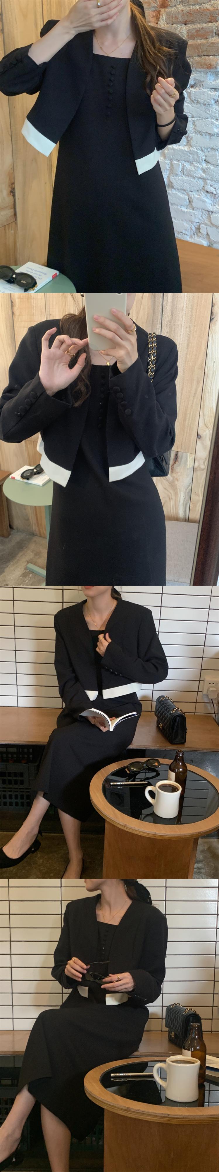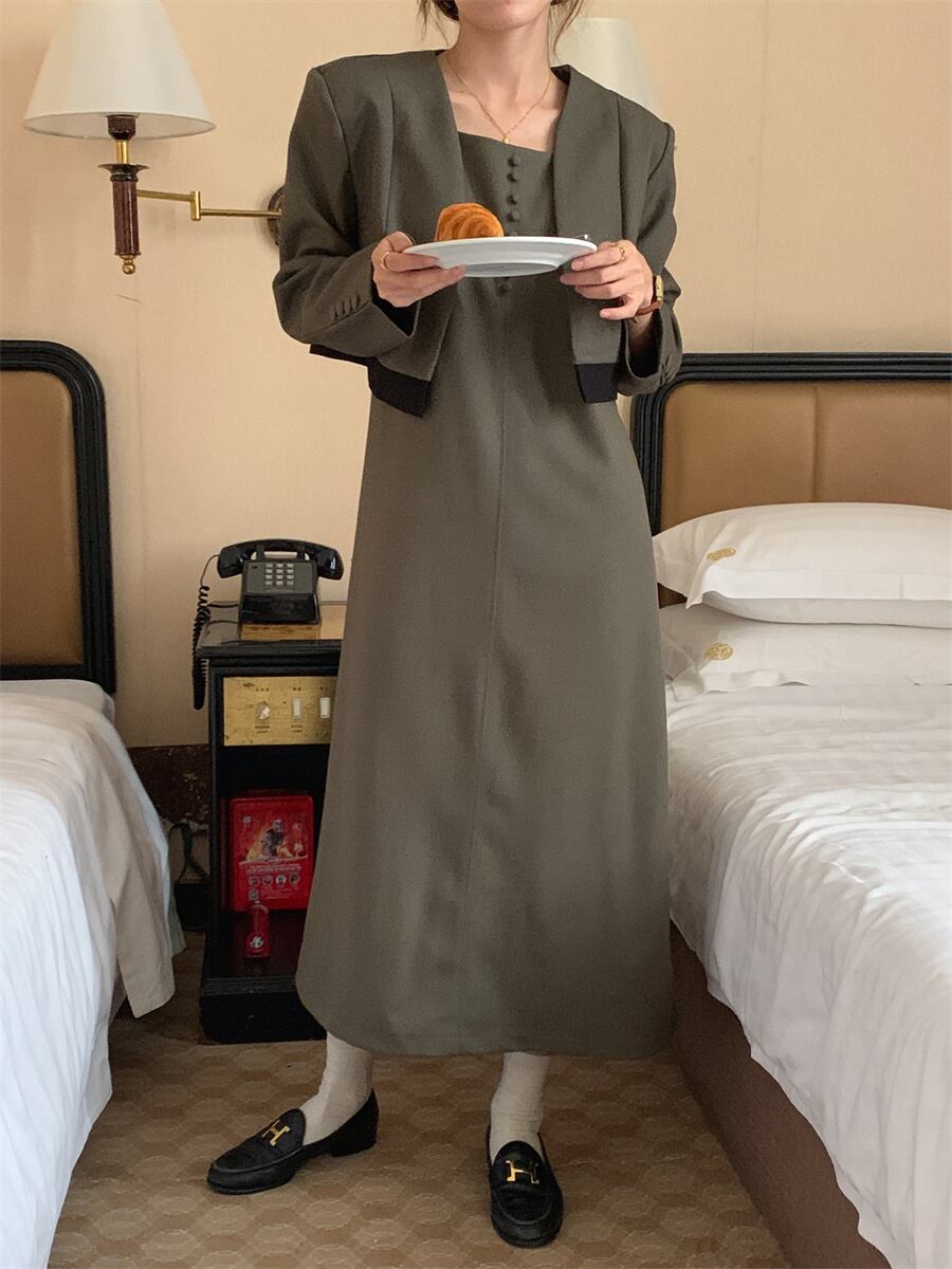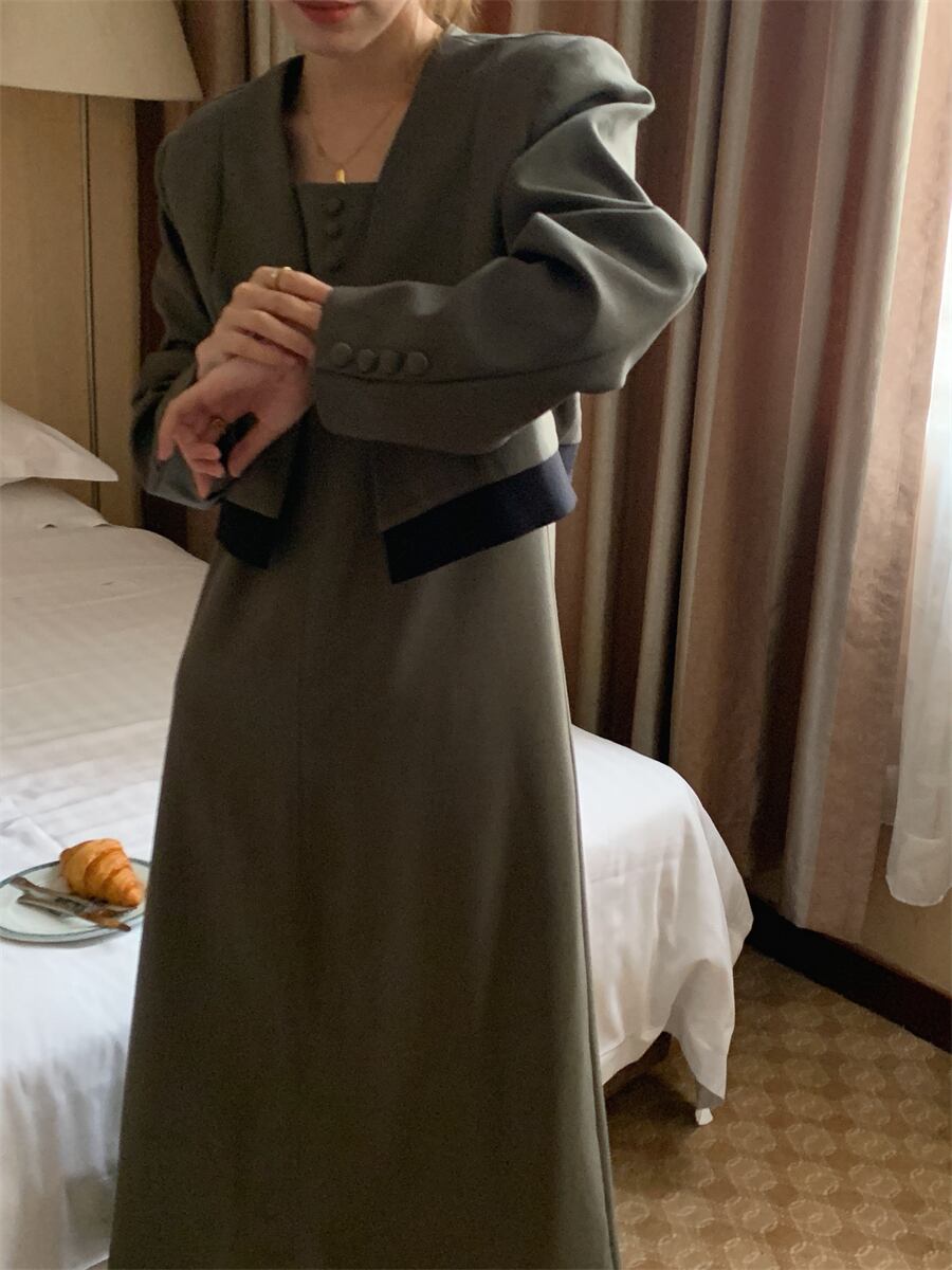 シックな秋のスーツフレンチカラーコントラストスーツショートコートシングルブレストノースリーブドレスツーピースセット服 オータム 秋物 got26034037077