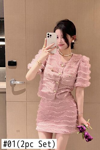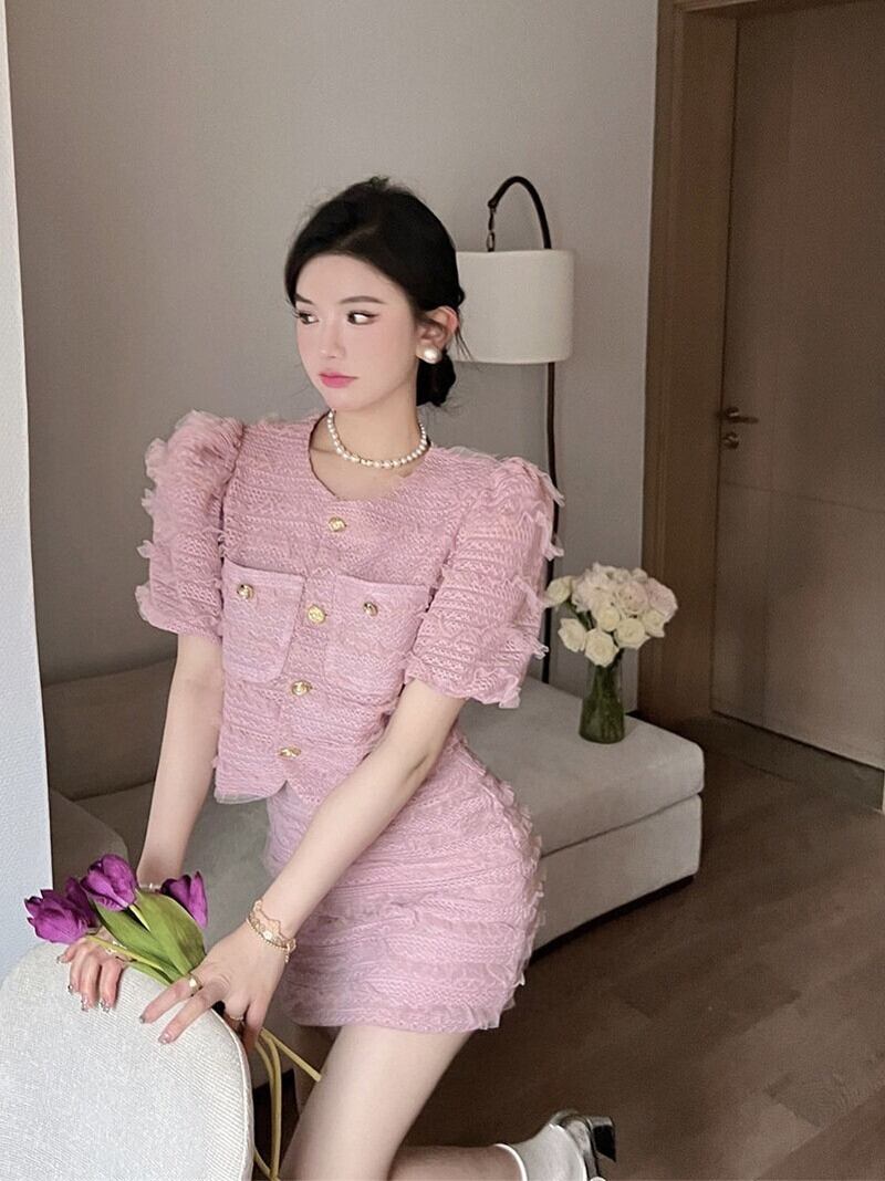 ピンクのブラウス スカート セット気質スーツ夏ドレス カバー腹フレンチ シックなトップ スーツ ツー ピースの女性 サマー 夏物 got21673076888