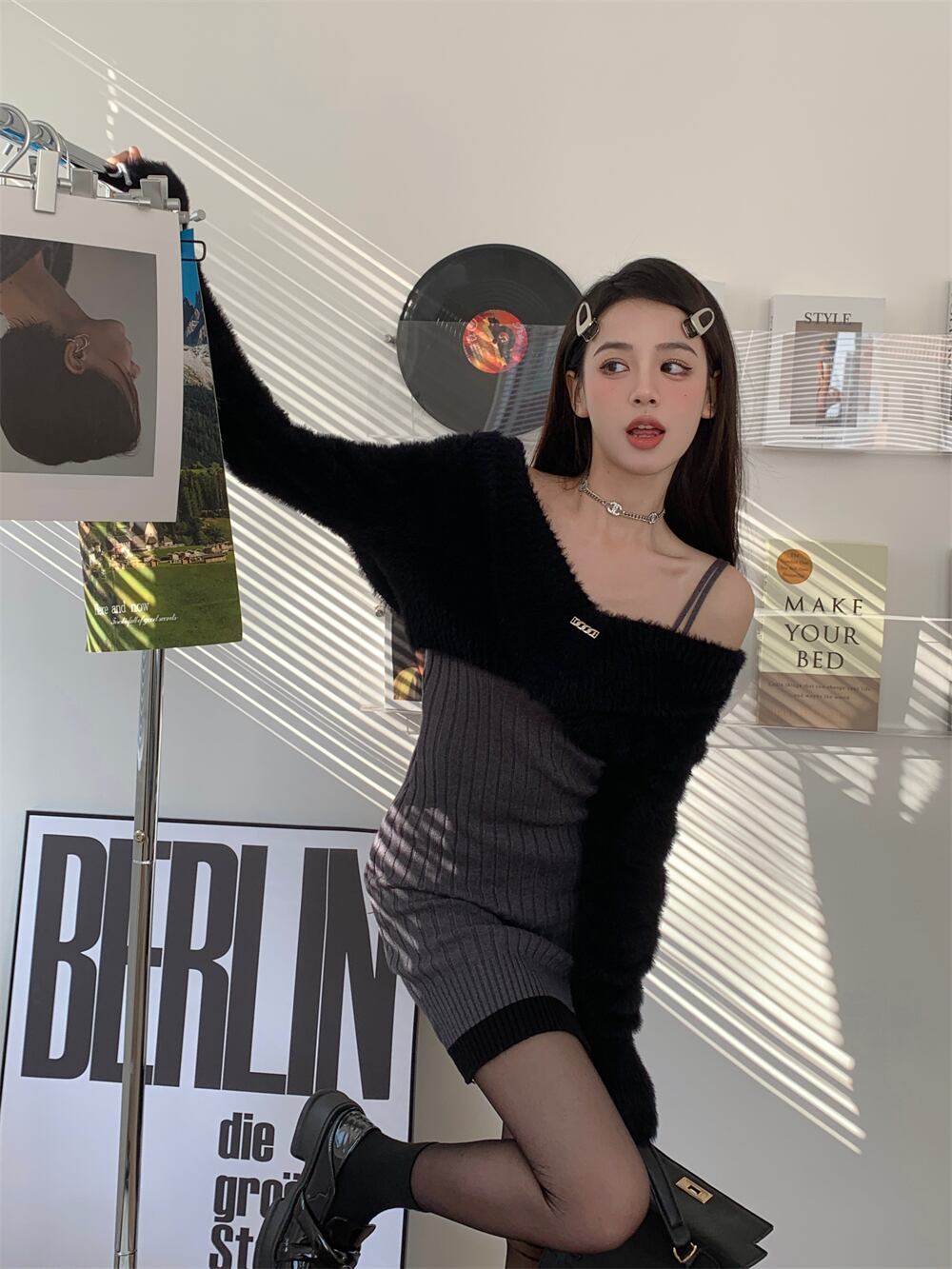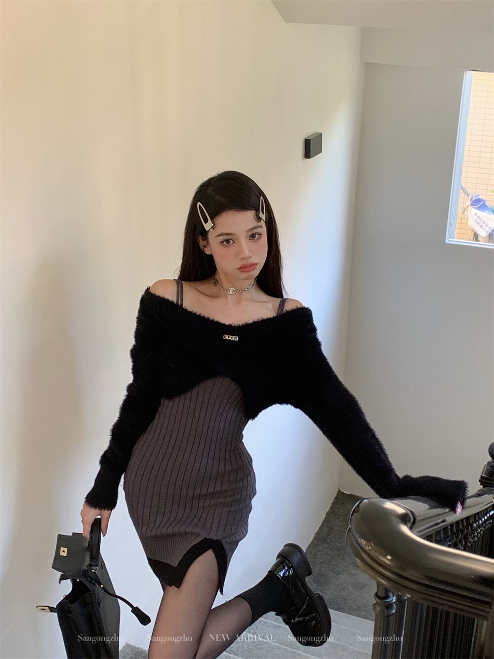 春のスーツの女性のホットガールサスペンダースプリットヒップドレスブラックショートスラッシュネックトップツーピースセット服 スプリング 春物 got12190866827