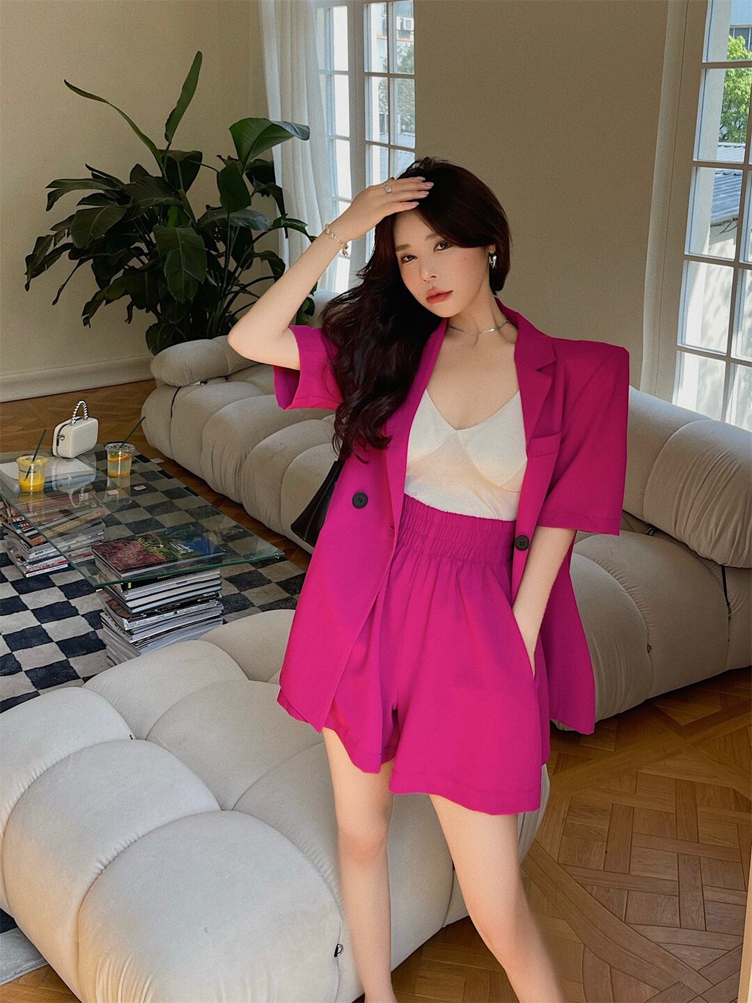 オフィスレディ 通勤スーツ レディース バックスプリット 小さめスーツ コート ウエストゴム ショートパンツ 2点セット 洋服 エラスティック 伸縮 会社 学校 通勤や通学にも got40658592609