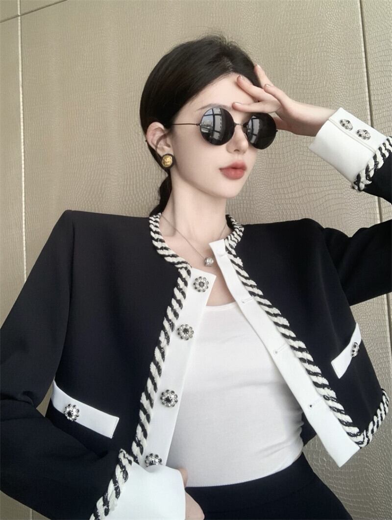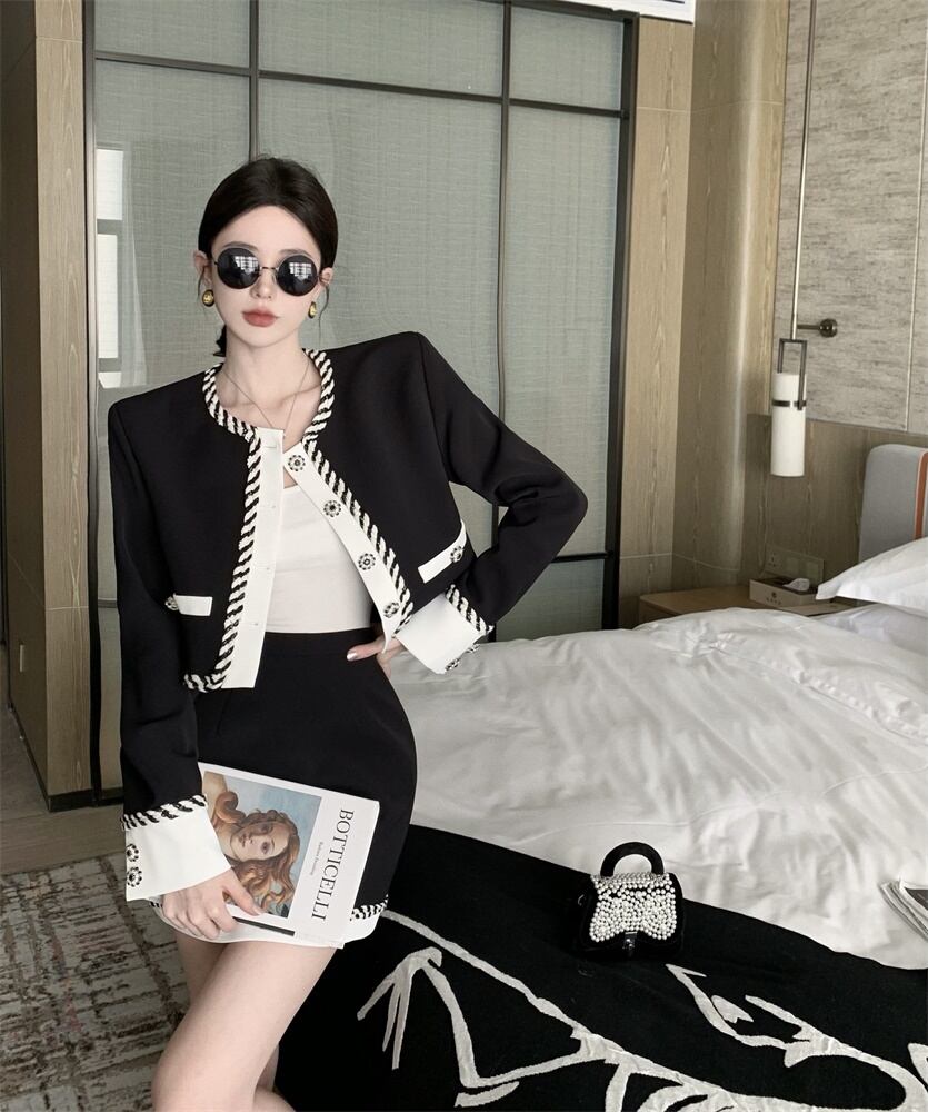 OLスーツ レディース カラーコントラスト 長袖 丸首 コート トップス ウエストスカート 2点セット 洋服 ロング 会社 学校 通勤や通学にも got51232131904