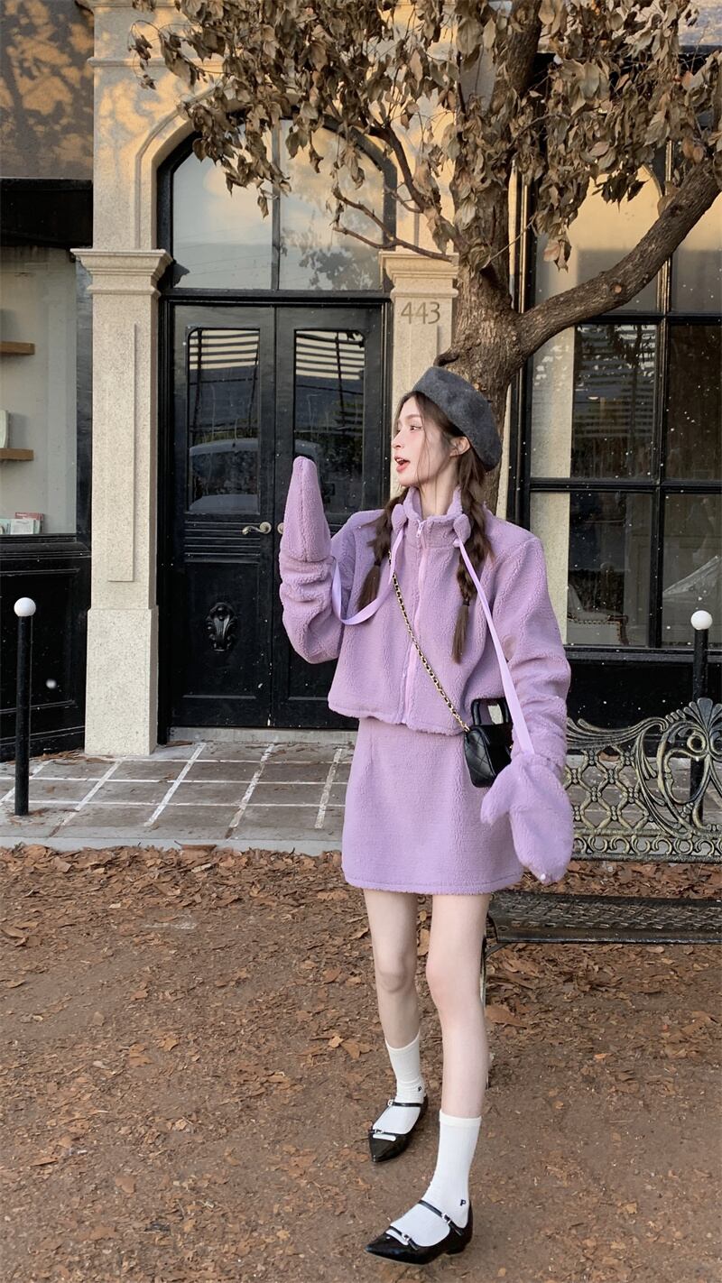 スタンドカラー 長袖 ゆったり 万能 プラッシュコート レディース 冬用 ウエストスカート 2点セット 洋服 ロング ウィンター 冬物 got67117003602
