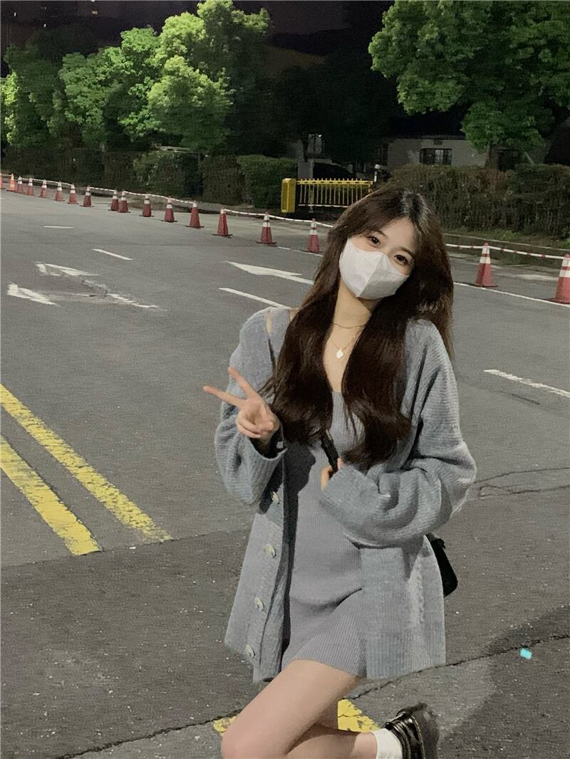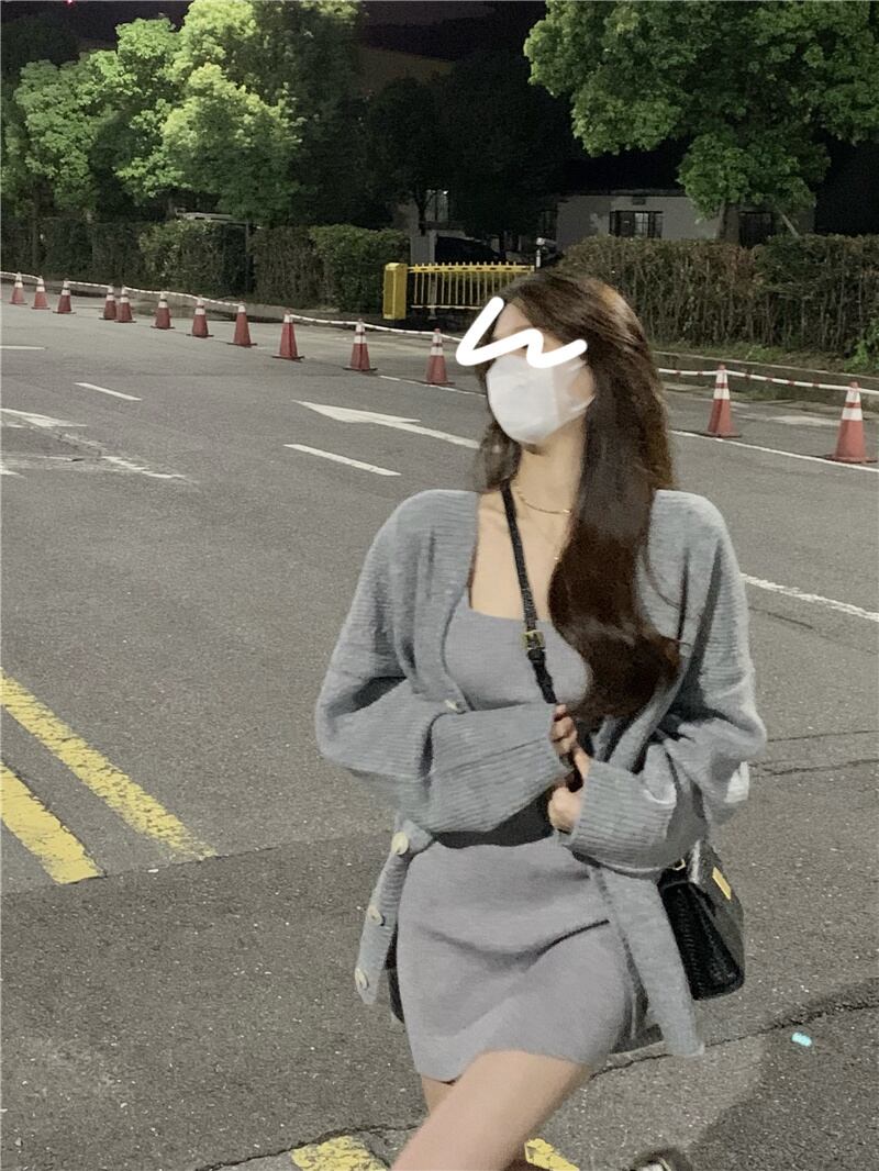 スウィート ガール スーツ女性の特大ニット カーディガン コート スリム セーター スリング ドレス 2 点セット服 大人ガーリー キュート カジュアル got898185373