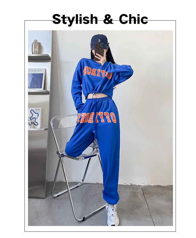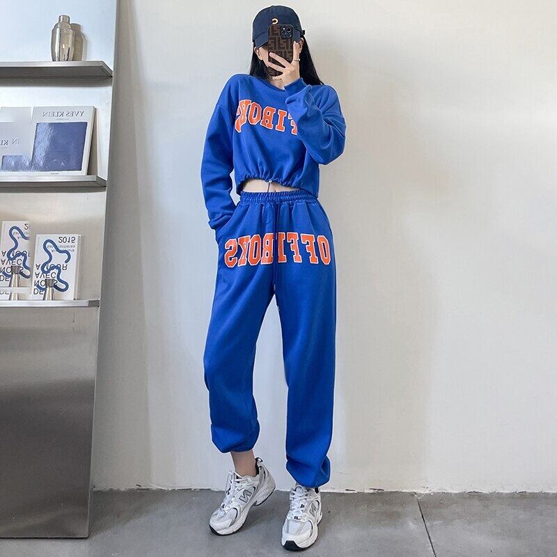レディースツーピースセットルーズスポーツウェアグリーントップスヒップホップパンツプレッピースタイルゴス秋/冬セット オータム 秋物 ウィンター 冬物 got79308545695