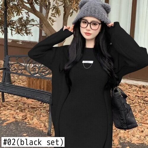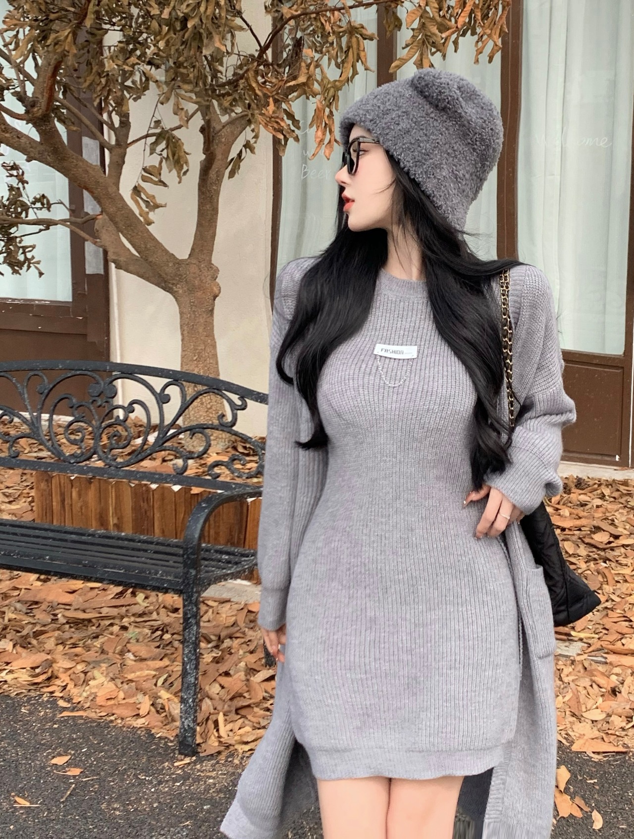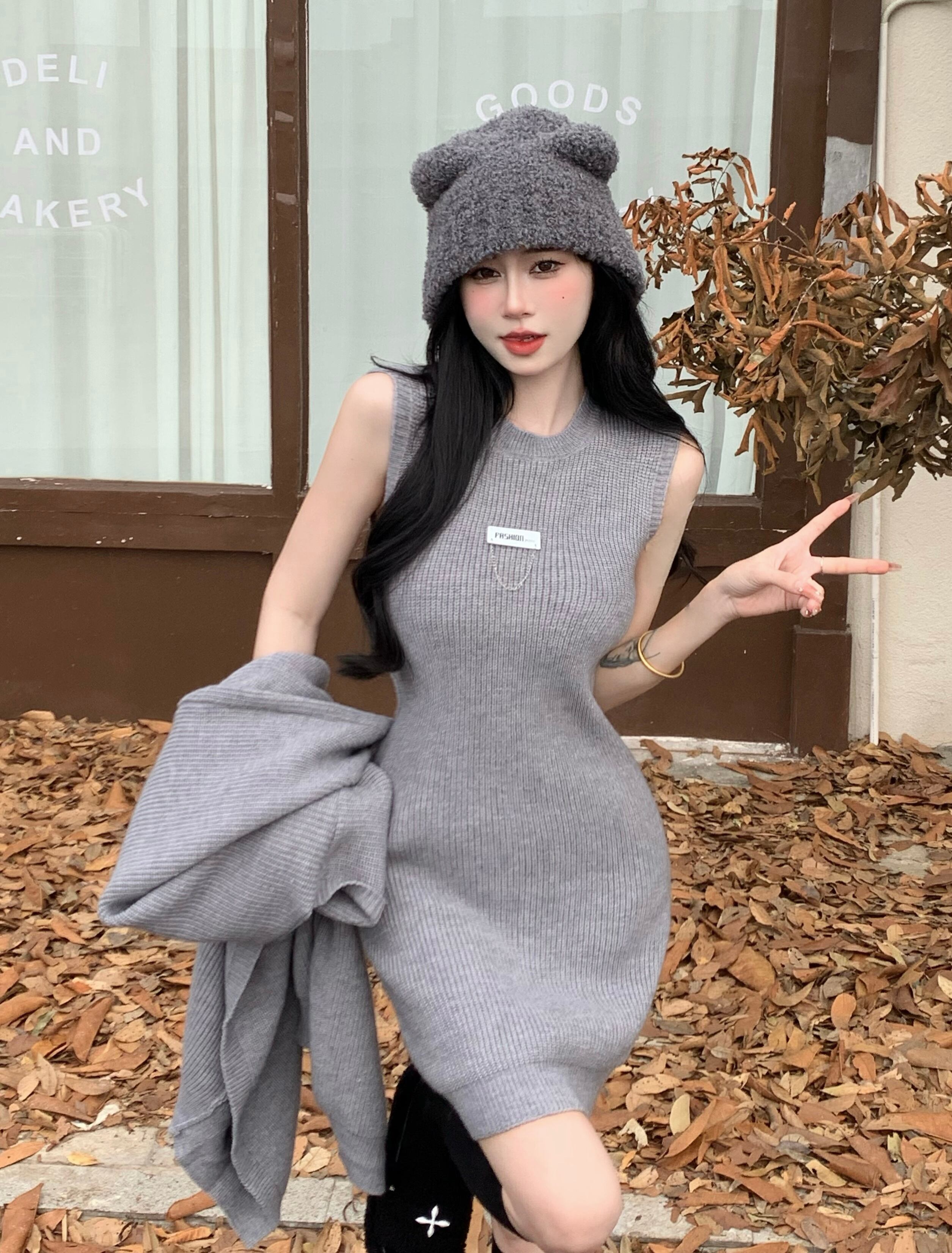 スウィートガールグレースーツルーズニットカーディガン厚手コートノースリーブドレススリムツーピースセット服 大人ガーリー キュート カジュアル got94754484489