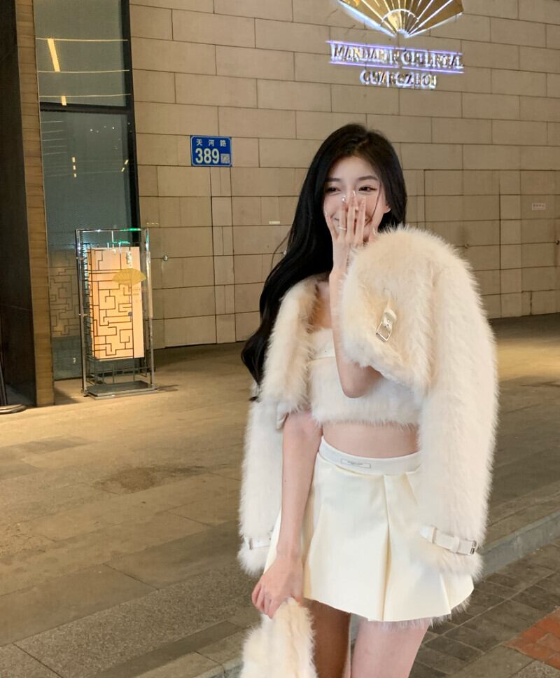 スイートウィンタースーツ フェイクファー プラッシュ ショートコート ボトム付き チューブトップ プリーツスカート ピンク 暖かい 3点セット 服 大人ガーリー スウィート キュート カジュアル 冬物 got19950795785