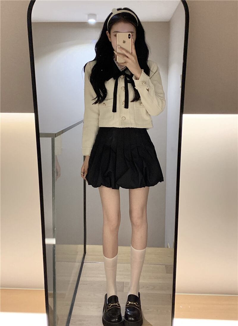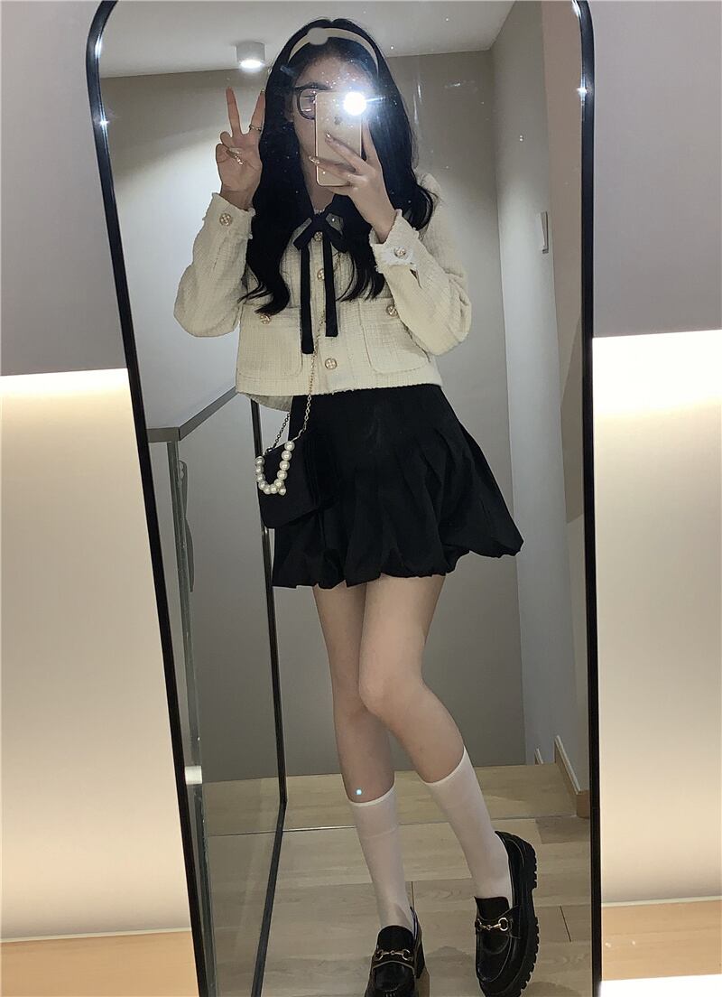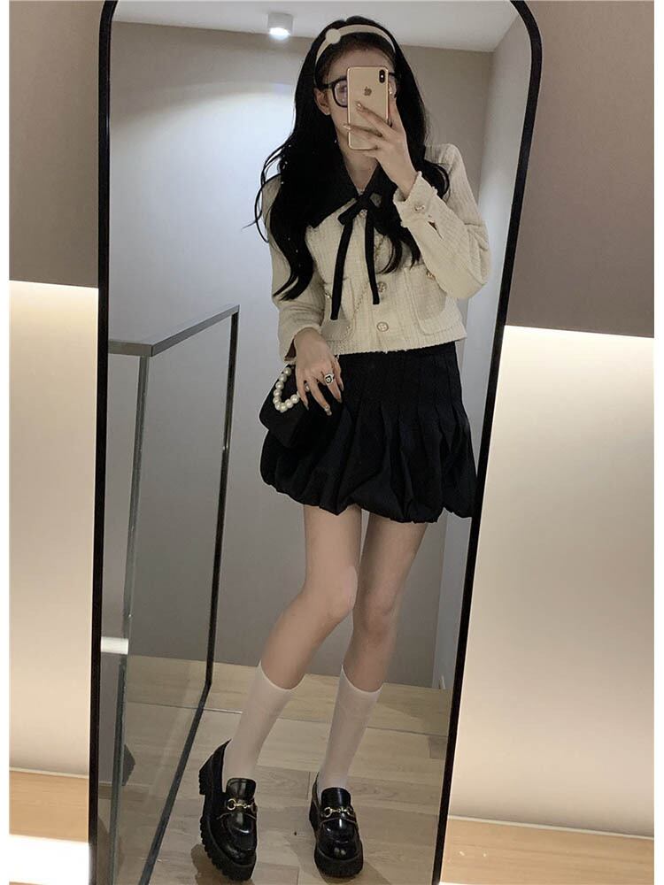 ツーピースセットレディース衣装ショート取り外し可能な襟コートスリム黒プリーツスカート梨花服秋のスカートセット ブラック オータム 秋物 got22570254129
