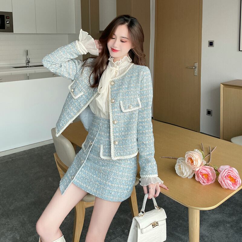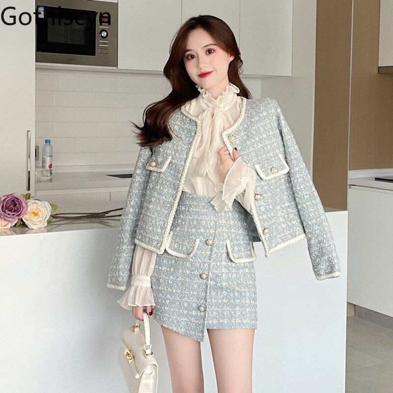 Gothiscyn 冬の女性ショートスカートセットシャツツイードコートミニスカートレトロ 3 点セット女性衣装 ウィンター 冬物 got15760548321