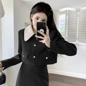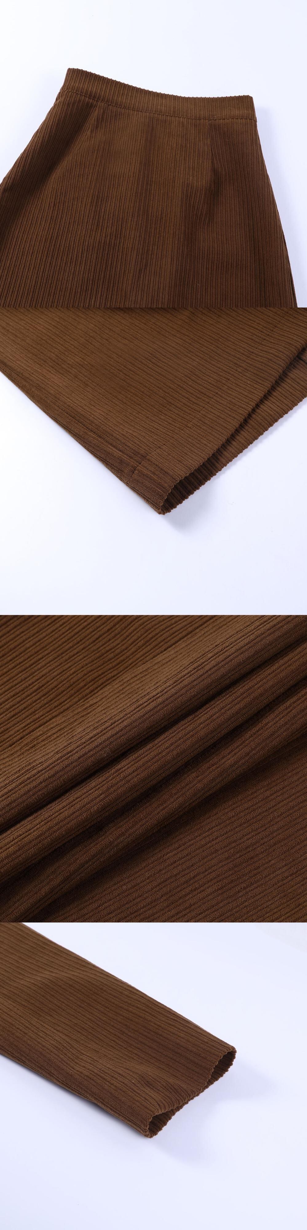 フレンチスタイルコーデュロイスーツレディースコントラストターンダウンカラーショートコートロングスカートツーピースセット服 got46724480092