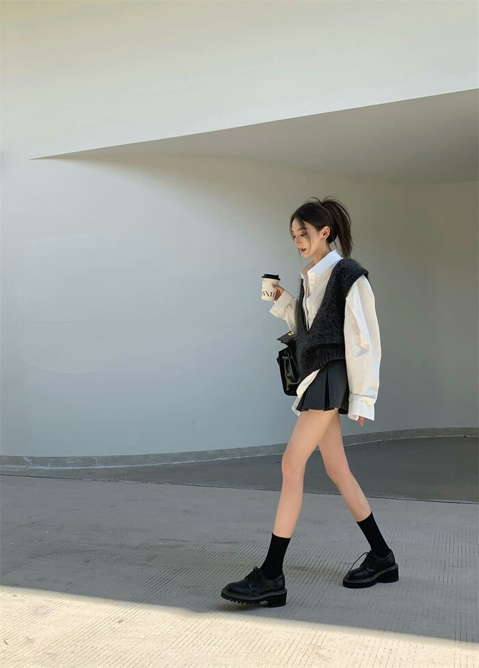 スタイル スーツ ニット セーター ベスト 万能 シャツ プリーツ スカート 秋冬 3点セット 洋服 オータム 秋物 ウィンター 冬物 got30149207339