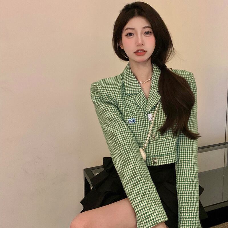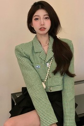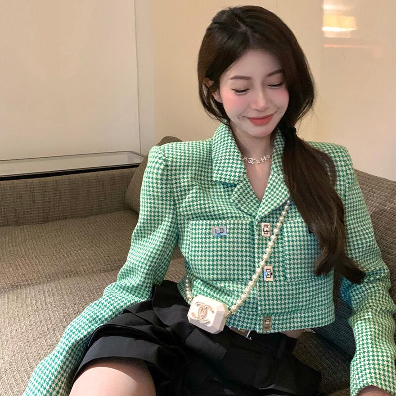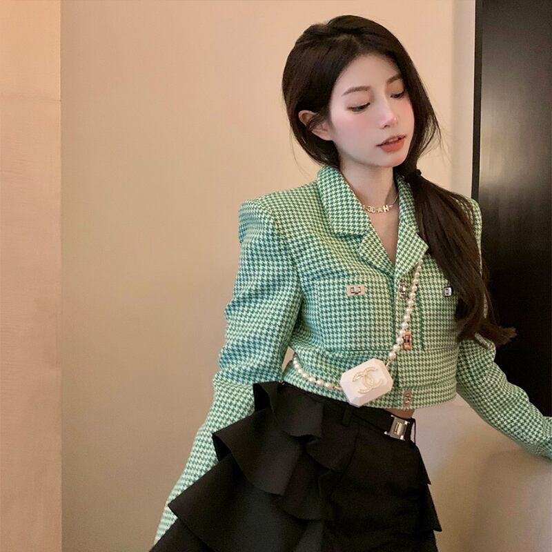 格子縞のミニスカートセット小さな香りの気質のスーツの女性の春 2 点セットレディース衣装 スプリング 春物 got19504950590