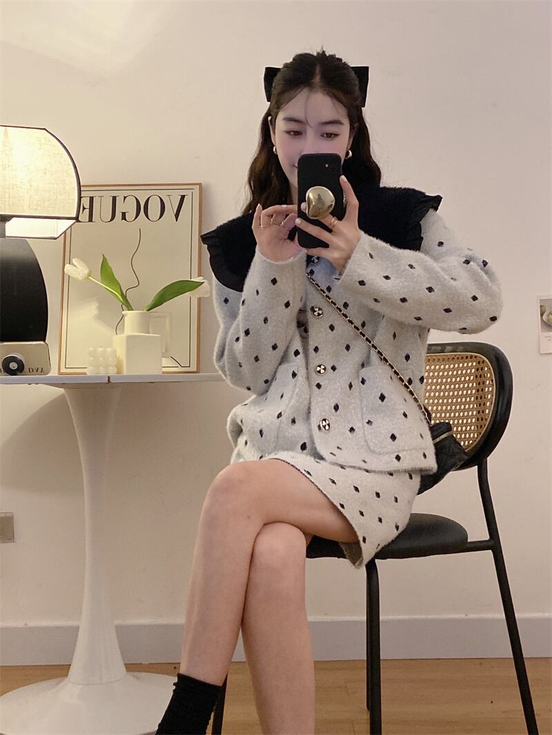 秋のスーツスタイルピーターパンカラー長袖ショートコートAラインスカートツーピースセット服 ロング オータム 秋物 got12856518904
