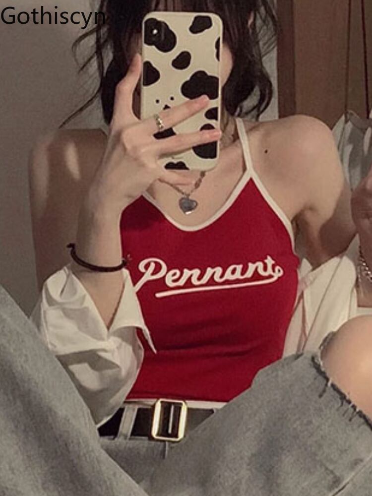 Gothiscyn 女性タンクキャミレッドノースリーブチューブトップス夏のクロップトップセクシーな Y2k ストリートボトムシャツ原宿 かわいい サマー 夏物 got22959029426
