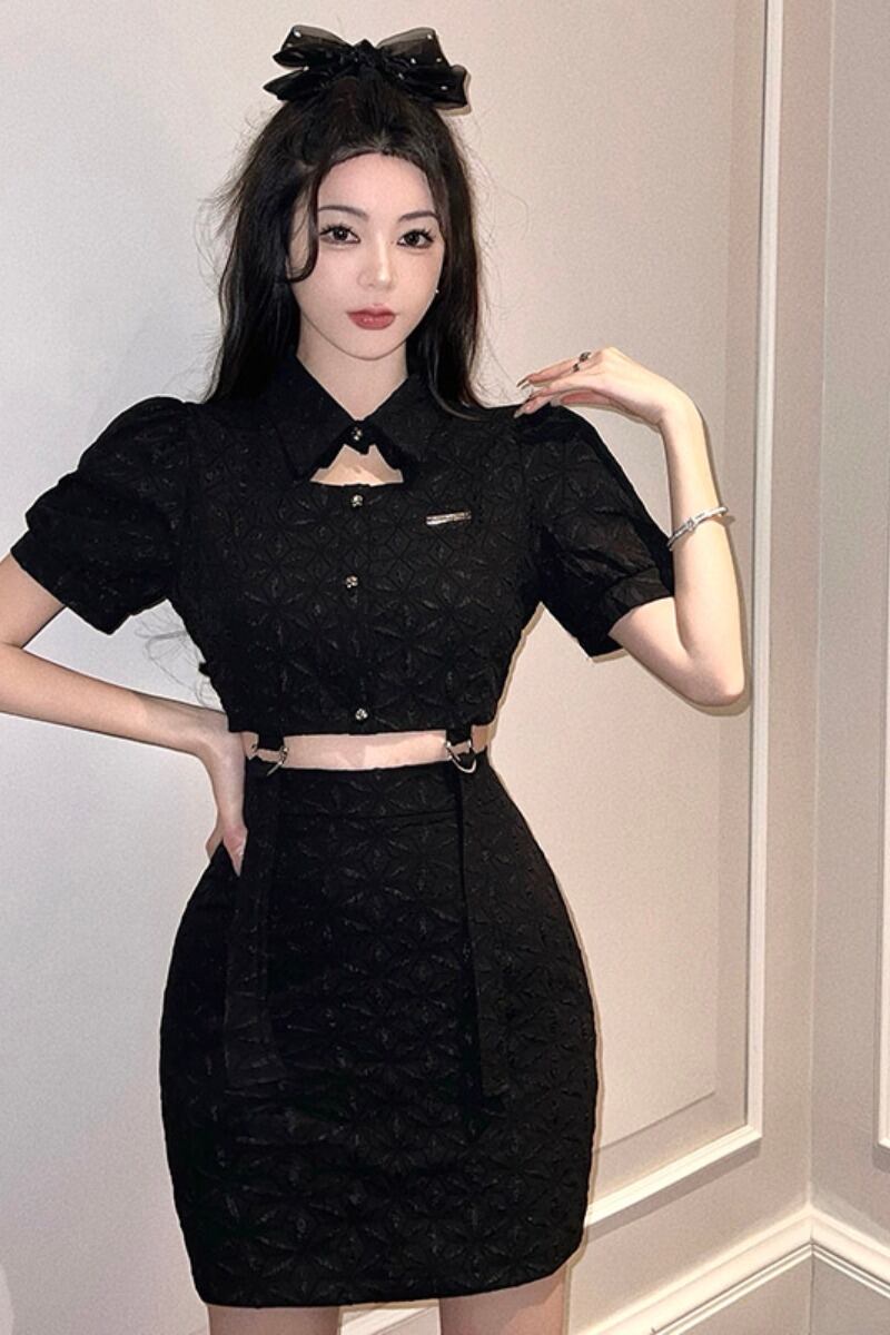 ホットガールスーツ女性の甘いクールな半袖ターンダウン襟シャツウエストスカート 2 点セット服 ショート ハーフスリーブ 大人ガーリー スウィート キュート カジュアル got43801403865
