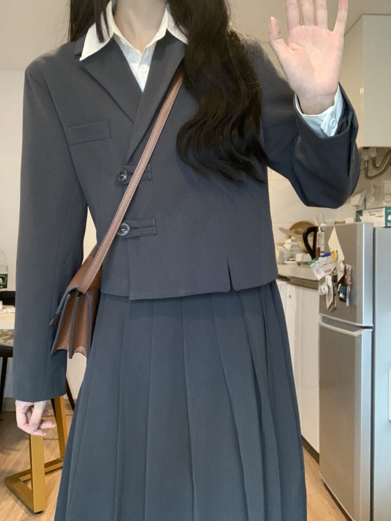 スタイルスーツ レディース 春 長袖 ショートコート プリーツスカート グレー ツーピース セット 洋服 ロング スプリング 春物 got82882608730