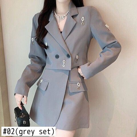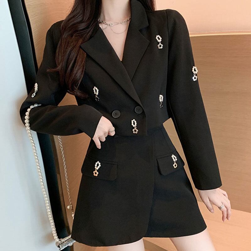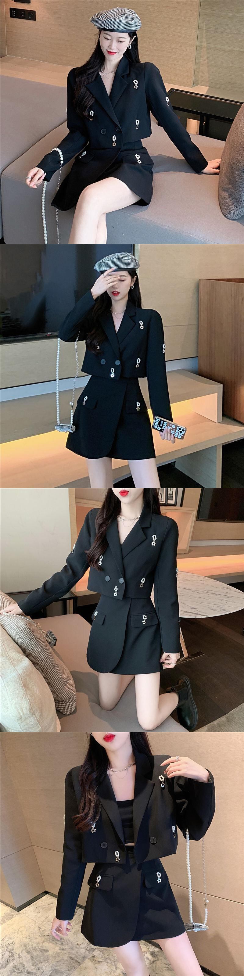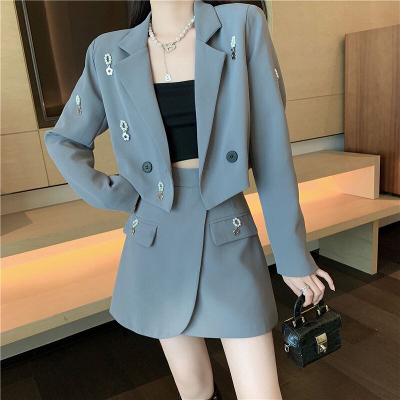 春フレンチスタイルのスーツの女性の長袖ショートジャケット-ウエストスリムスカートツーピースセット服 ロング スプリング 春物 got60494718933