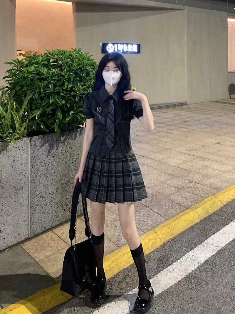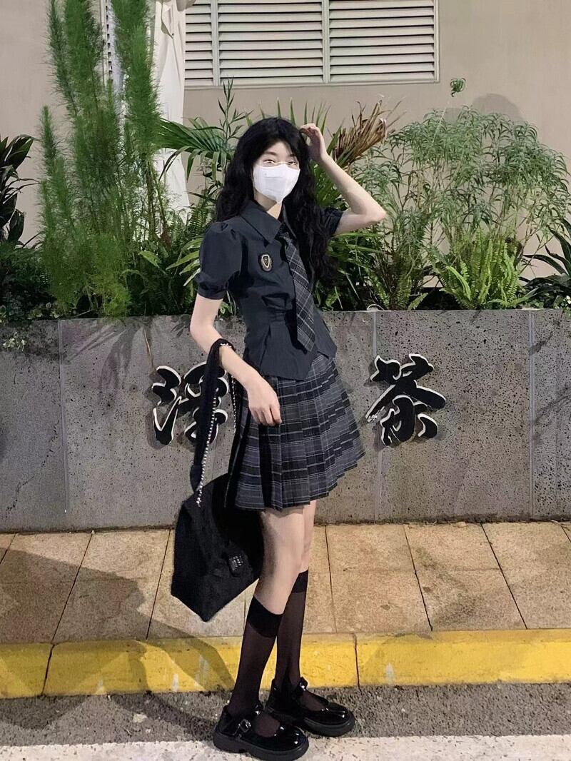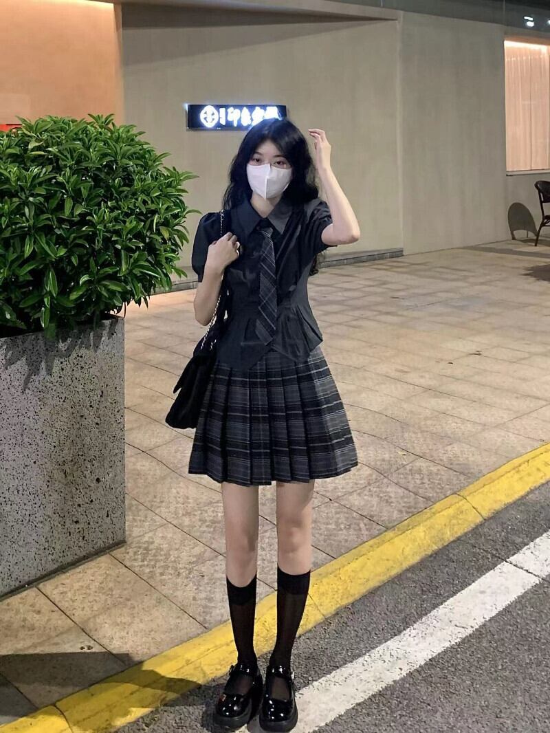 スタイル JK スーツ女性の甘いホットガールバブルスリーブシャツウエスト A ラインプリーツスカートネクタイ 3 点セット 大人ガーリー スウィート キュート カジュアル Aライン got28947313231