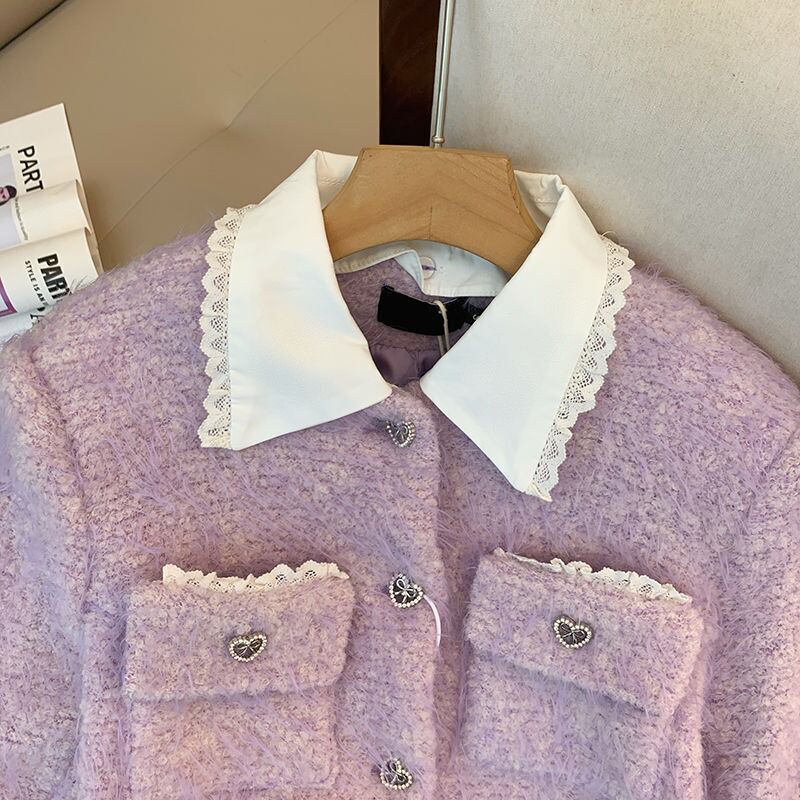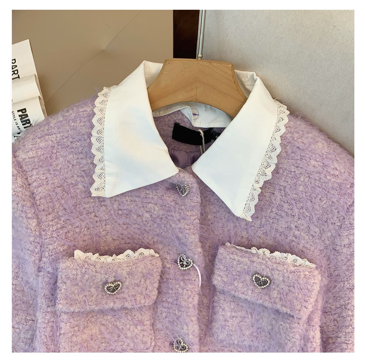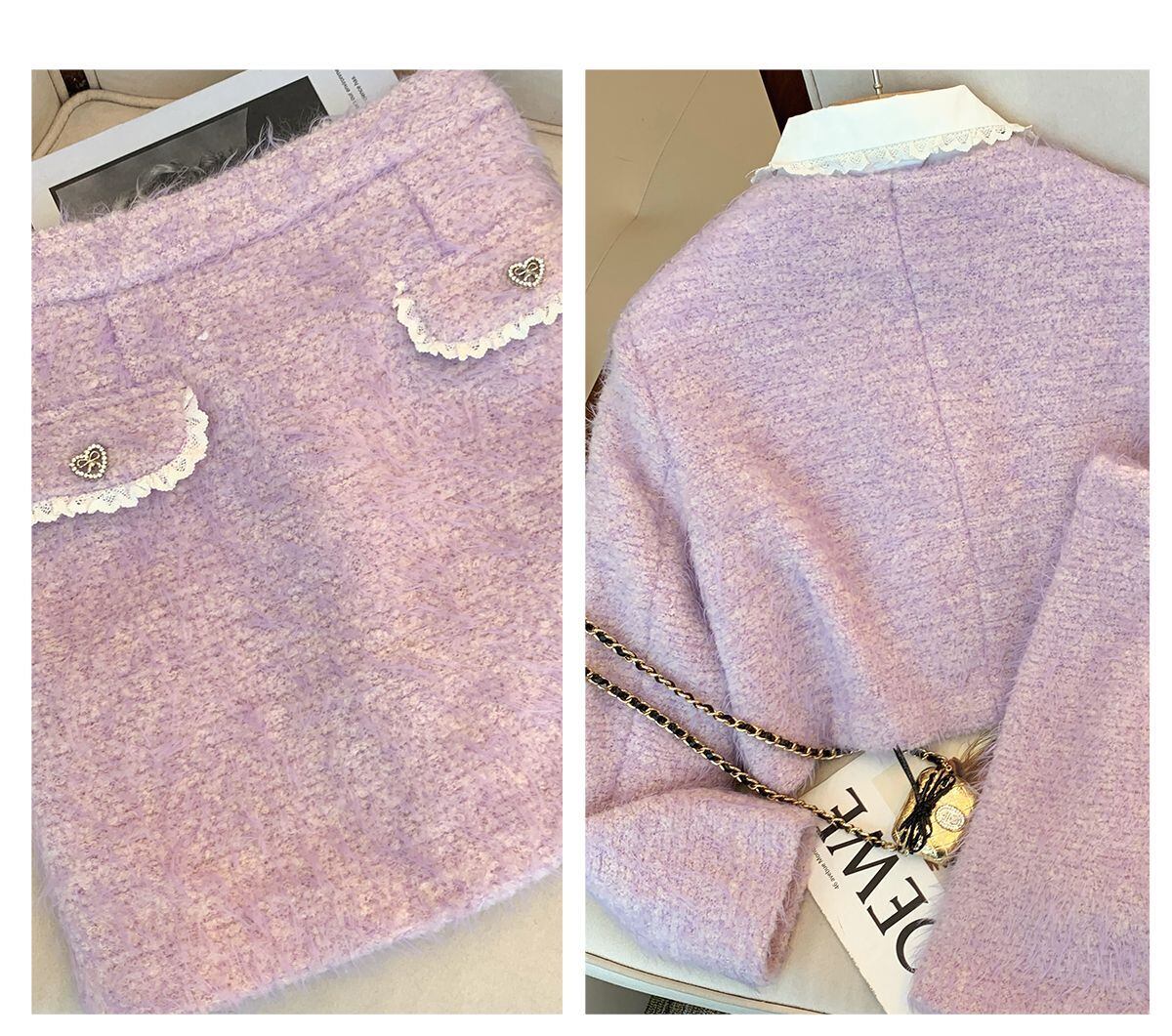 スウィートガールハートボタンスーツ女性の冬のターンダウンカラーロングスリーブショートコートウエストミニスカートツーピースセット 長袖 大人ガーリー キュート カジュアル ウィンター 冬物 got48983771478