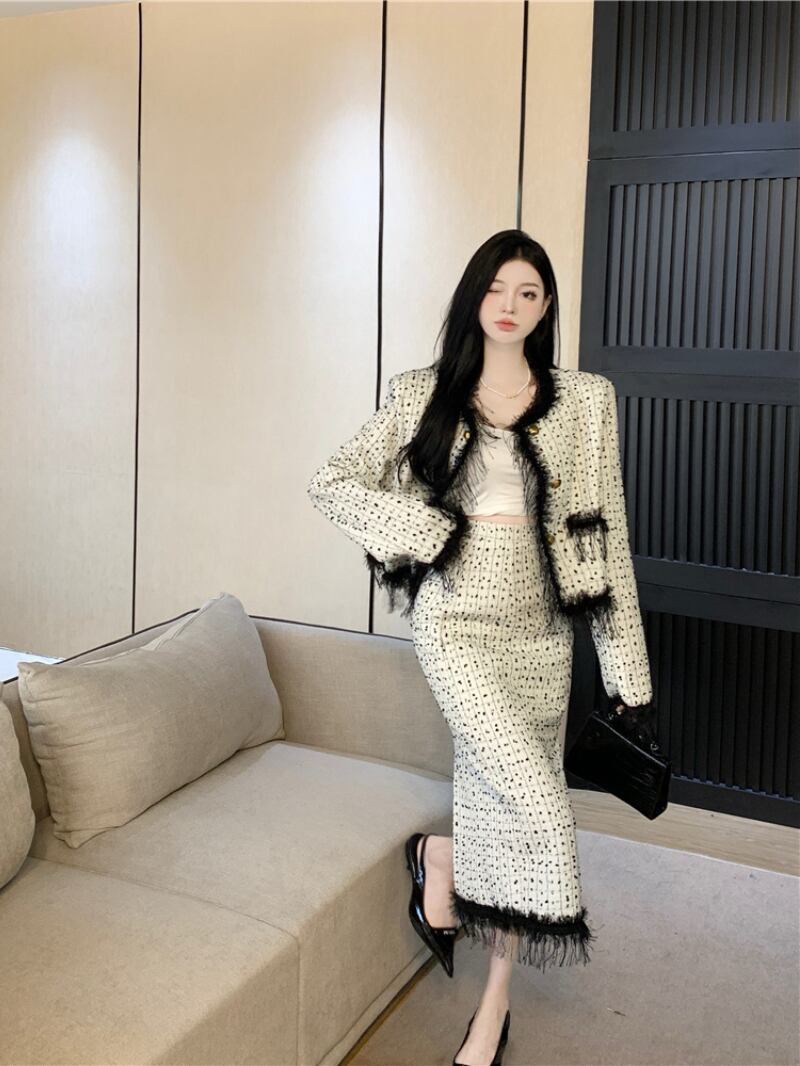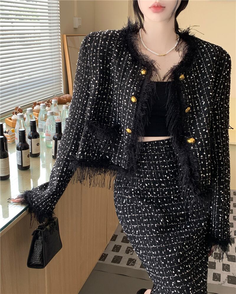 フレンチスタイル通勤スーツ女性の冬テルショートコートロングスカートプレミアムツーピースセット服 ウィンター 冬物 got65537399529