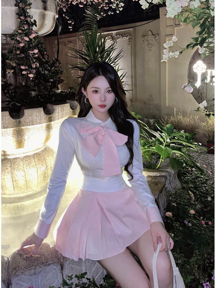 ツーピースセットレディース衣装甘い JK スーツ長袖シャツプリーツスカート梨花服秋/冬のスカートセット ロング 大人ガーリー スウィート キュート カジュアル オータム 秋物 ウィンター 冬物 got84044097695