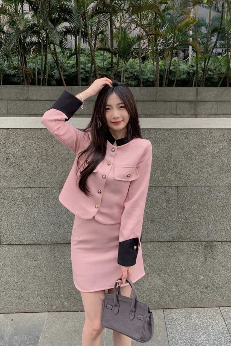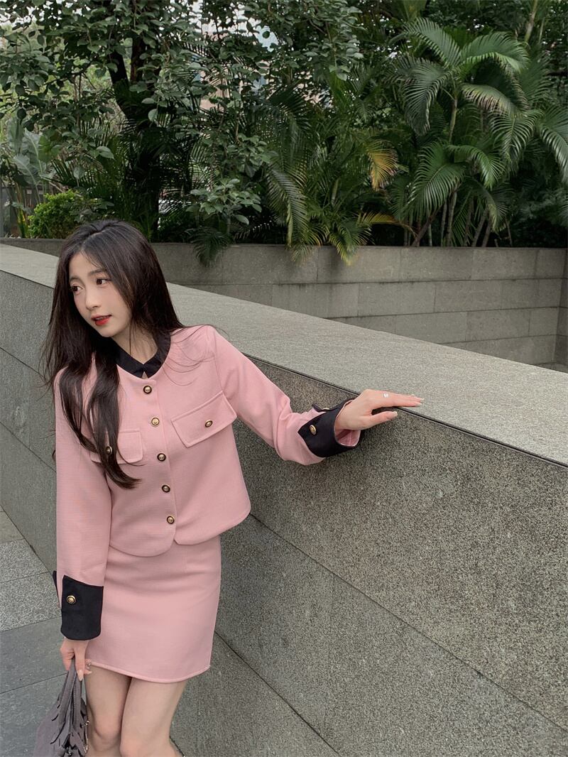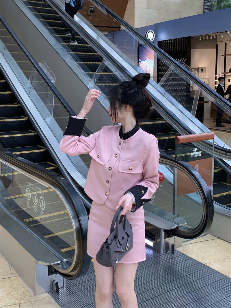 スウィートガールスーツ女性の春スタンドアップカラー長袖コートウエストスカート 2 点セット服 ロング 大人ガーリー キュート カジュアル スプリング 春物 got84161115649