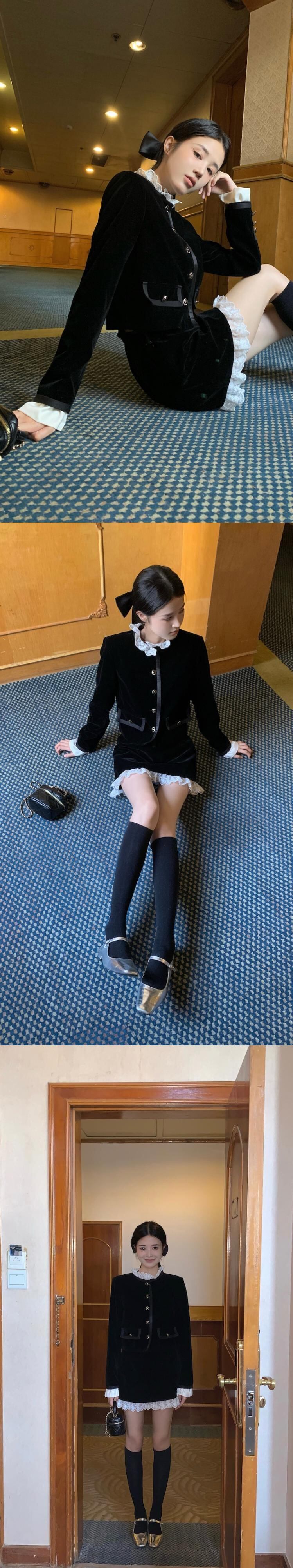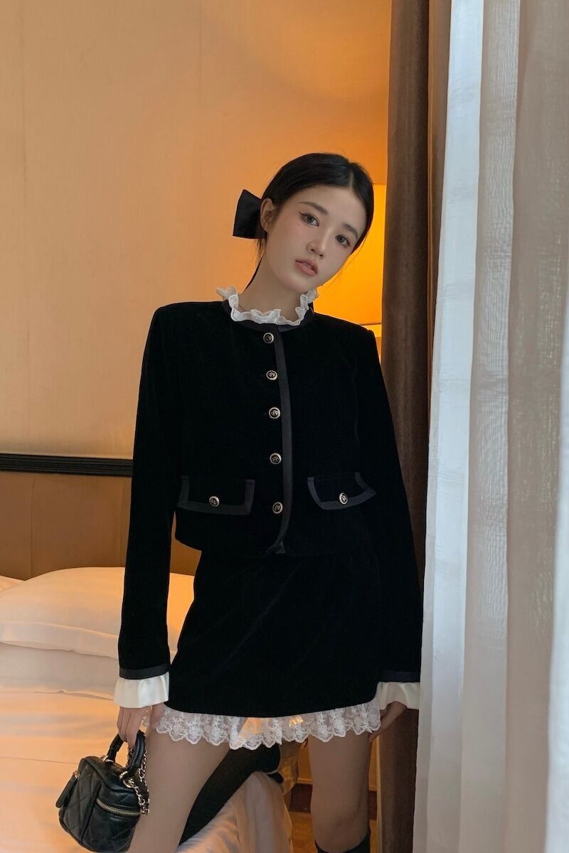 スタイルツーピースセットレディーススリムフィット秋と冬の甘いレースサイド長袖ベルベットコートウエストスカート ロング 大人ガーリー スウィート キュート カジュアル オータム 秋物 ウィンター 冬物 got18854294459
