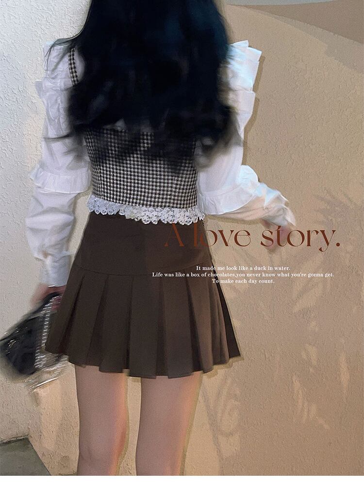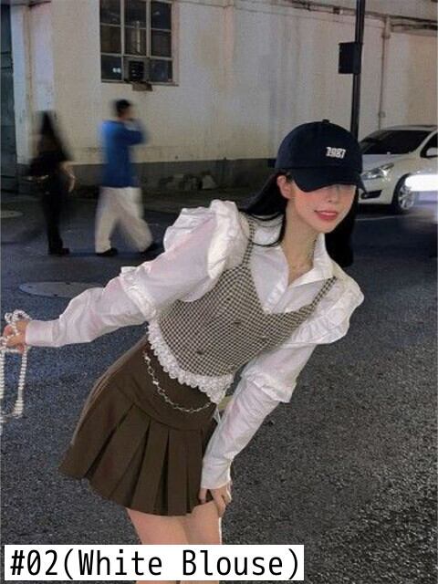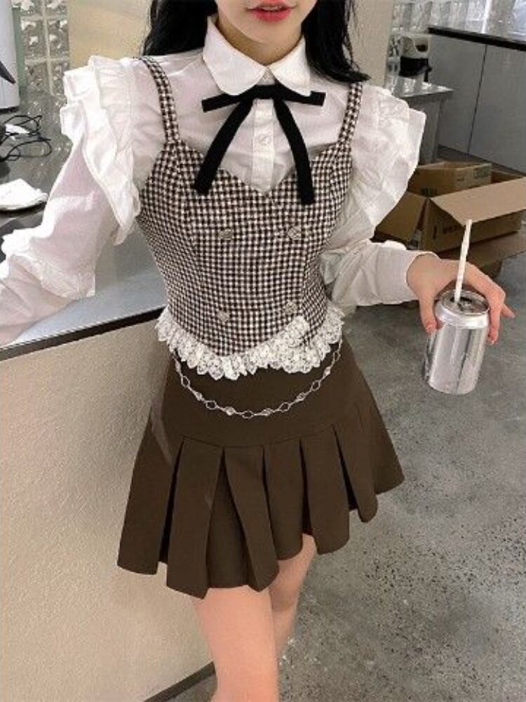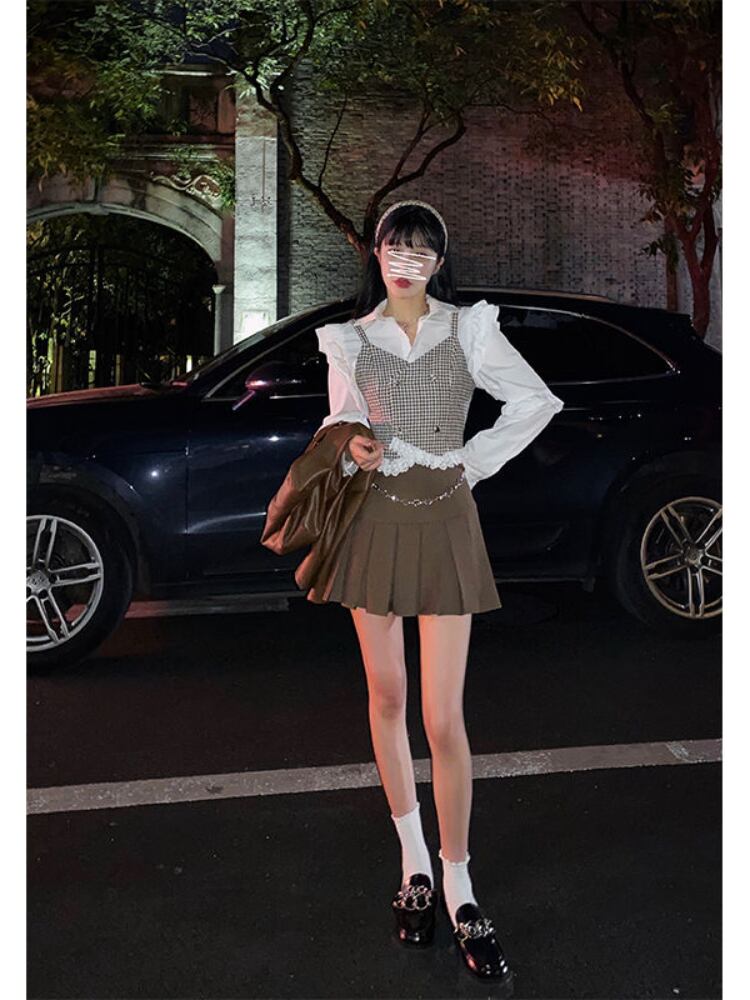 プレッピー スーツ タンク ベスト + シャツ + スカート 3 ピース フレンチ スタイル シックな春セクシーな女性スーツ ストリート スプリング 春物 got79843659296