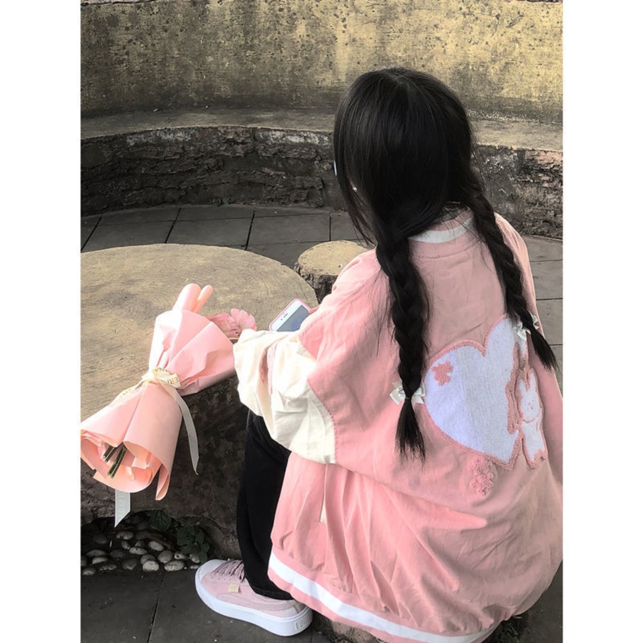 野球コート冬服女性原宿フレンチルーズレディースジッパー薄いトップ かわいい ウィンター 冬物 got89723033614