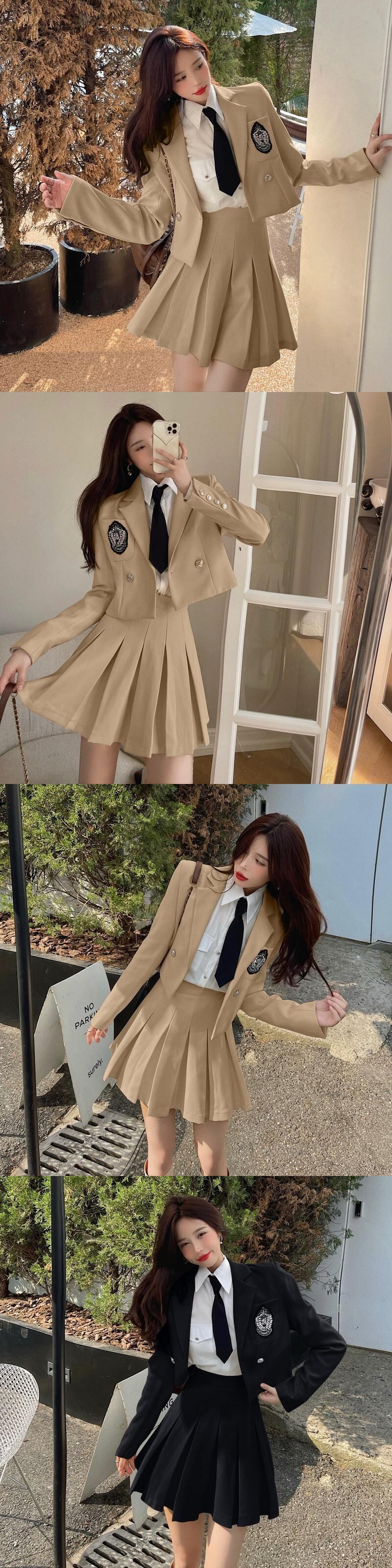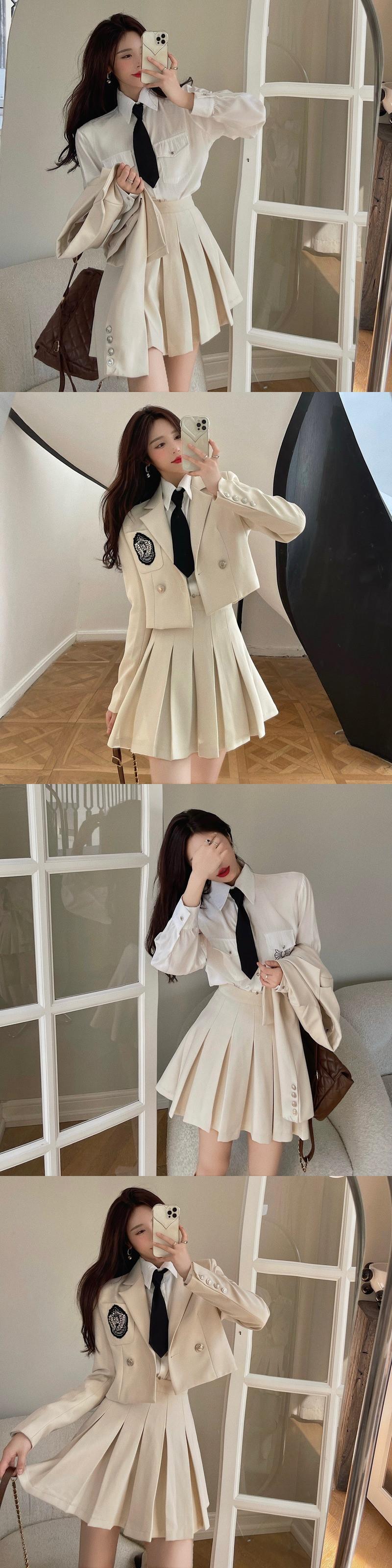 色:01(ベージュブレザーシングル),02(カーキブレザーシングル),03(ブラックブレザーシングル),04(ベージュスカートシングル),05(カカイスカートシングル),06(黒スカートシングル),07(白シャツシングル),08(ベージュ2点セット),09(カーキ2点セット),10(黒2本組)