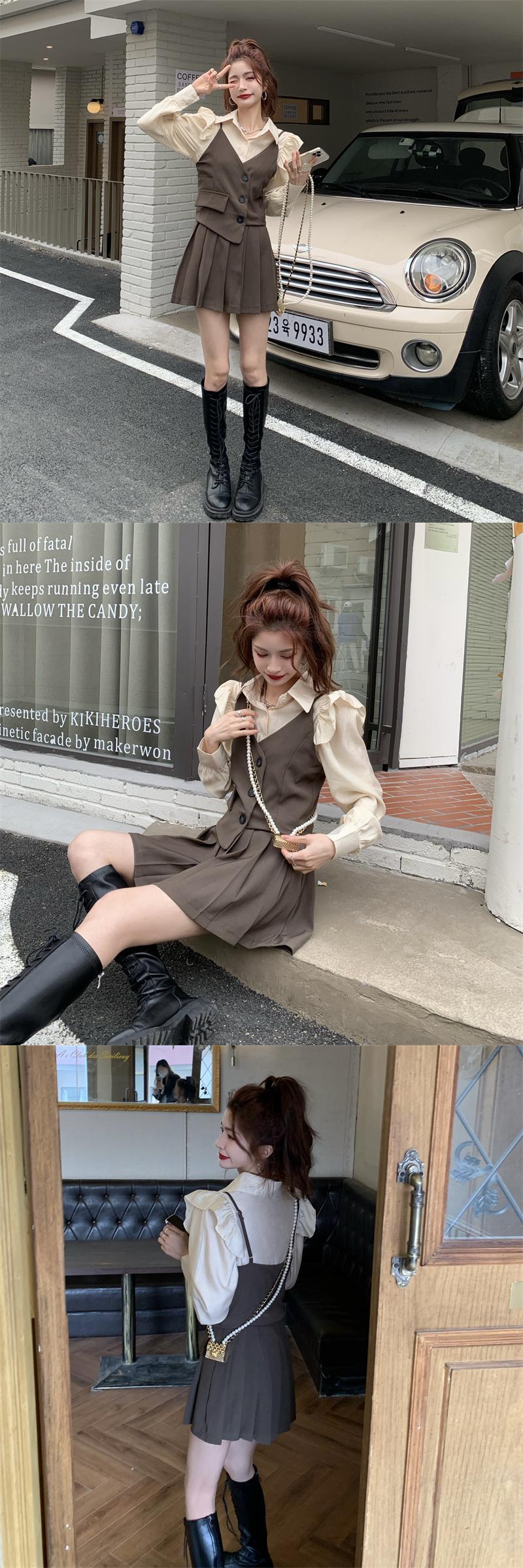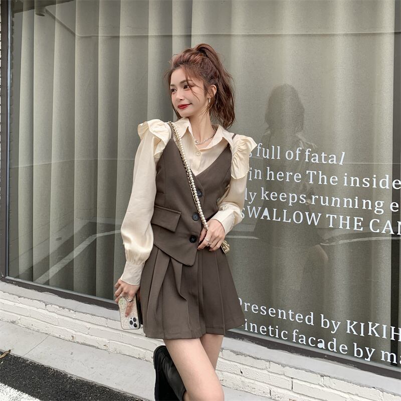 スタイルスーツフリル長袖シャツスリングプリーツドレスツーピースセットオフィスレディ生き抜く服 ロング 会社 学校 通勤や通学にも got22107989136