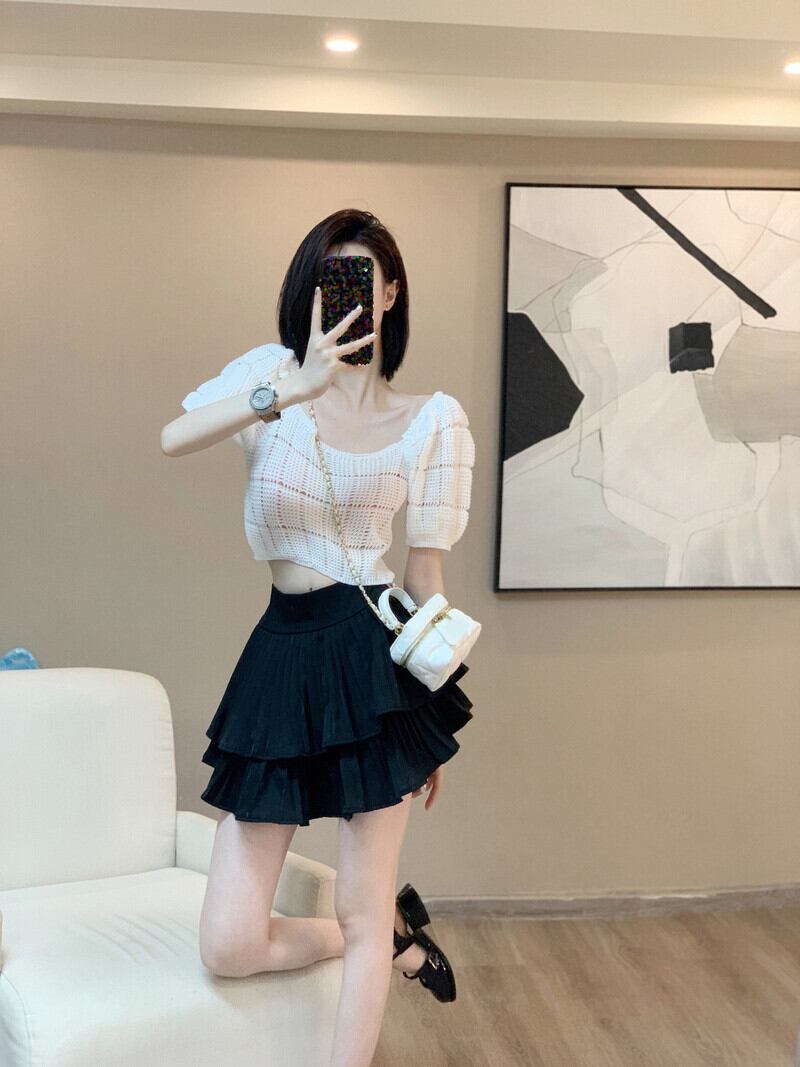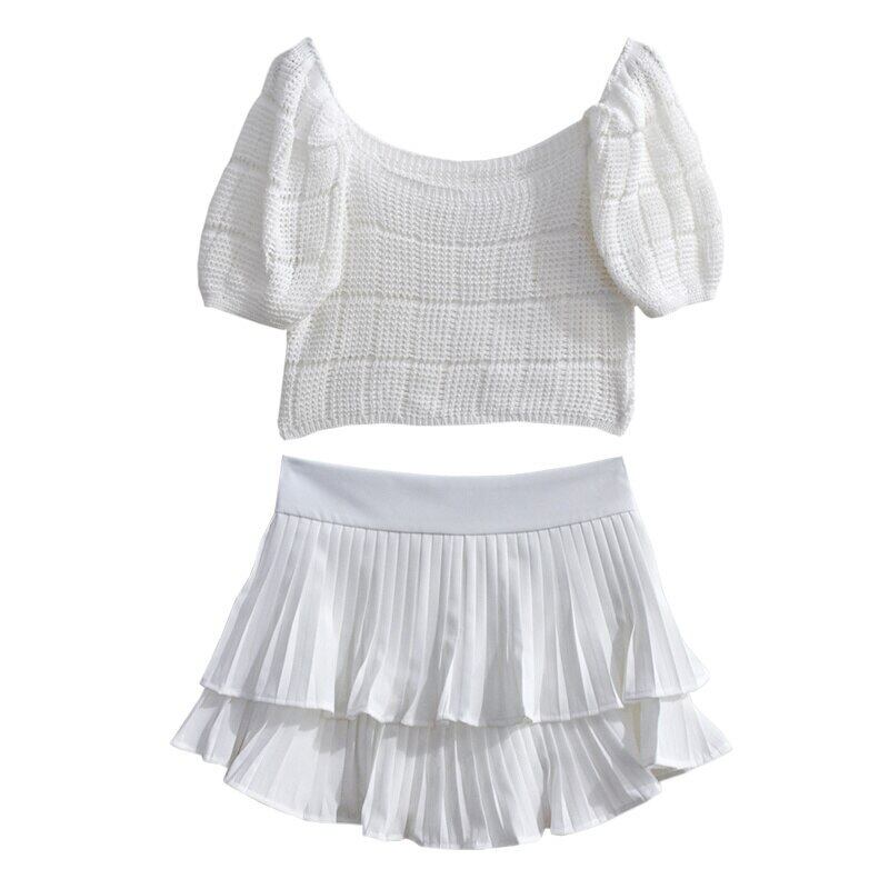 スカートセット甘いスパイシーなスタイルのツーピースのスーツの女性の夏のショートパフスリーブ日焼け止めセータープリーツスカート 大人ガーリー スウィート キュート カジュアル サマー 夏物 got77933595649