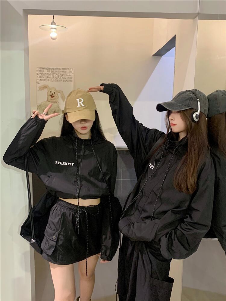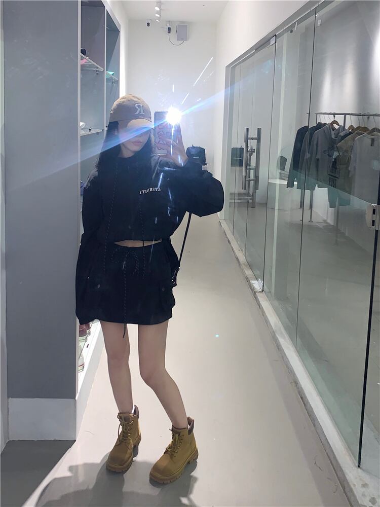 ツーピースセットレディース衣装長袖ショートコートミニ黒スカート無地梨花服秋/冬スカートセット ロング ブラック オータム 秋物 ウィンター 冬物 ソリッドカラー got16007875355