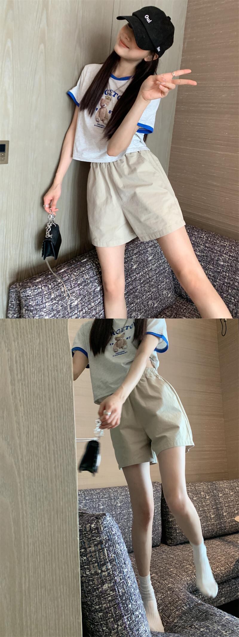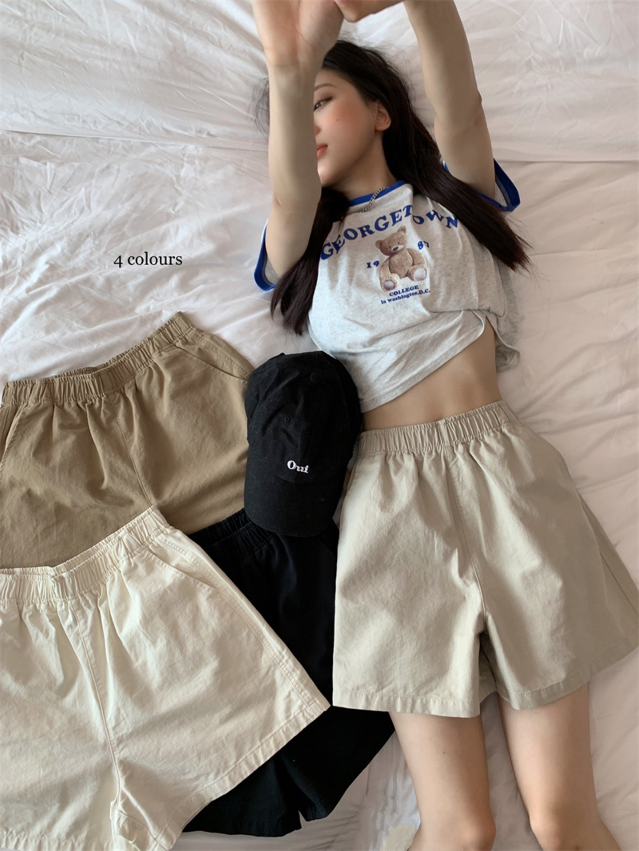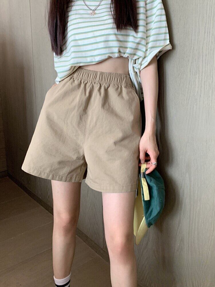 Gothiscyn カーキパンツ レディース ショーツ 夏 ウエストゆったり ワイドレッグパンツ ショートウエスト グランジ シンプル サマー 夏物 ブルマー ワイドパンツ got48226003242