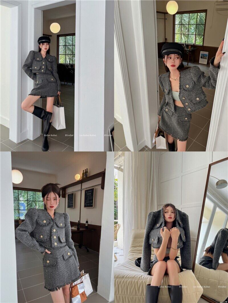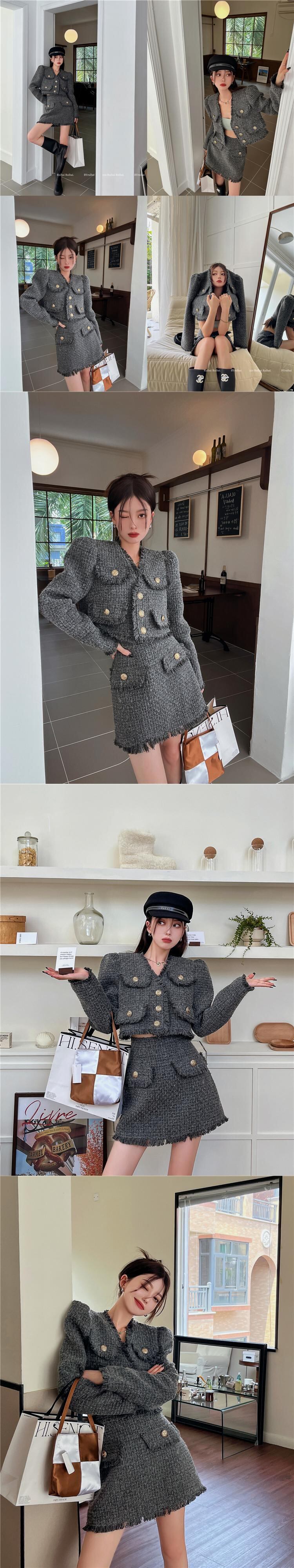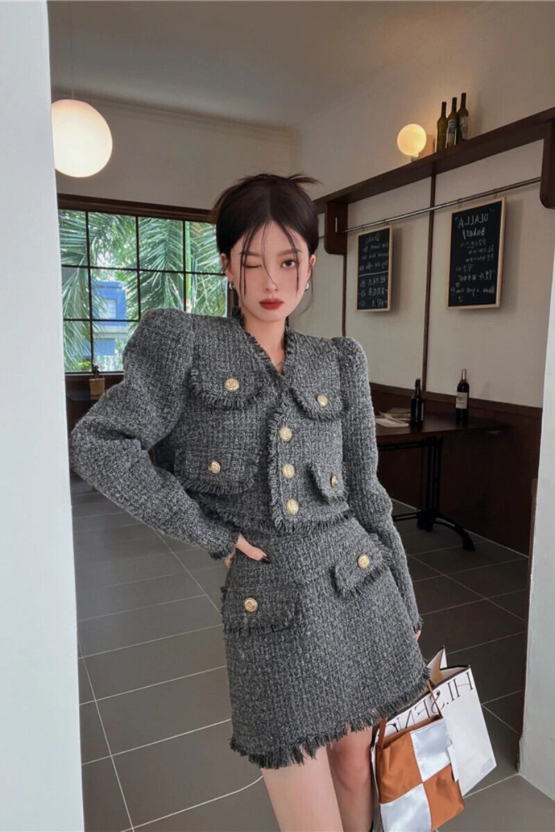 レディース スーツ テルセンス ツイード ショートコート レディース 秋風 長袖 トップス ミニスカート 2点セット ロング オータム 秋物 got38067945565